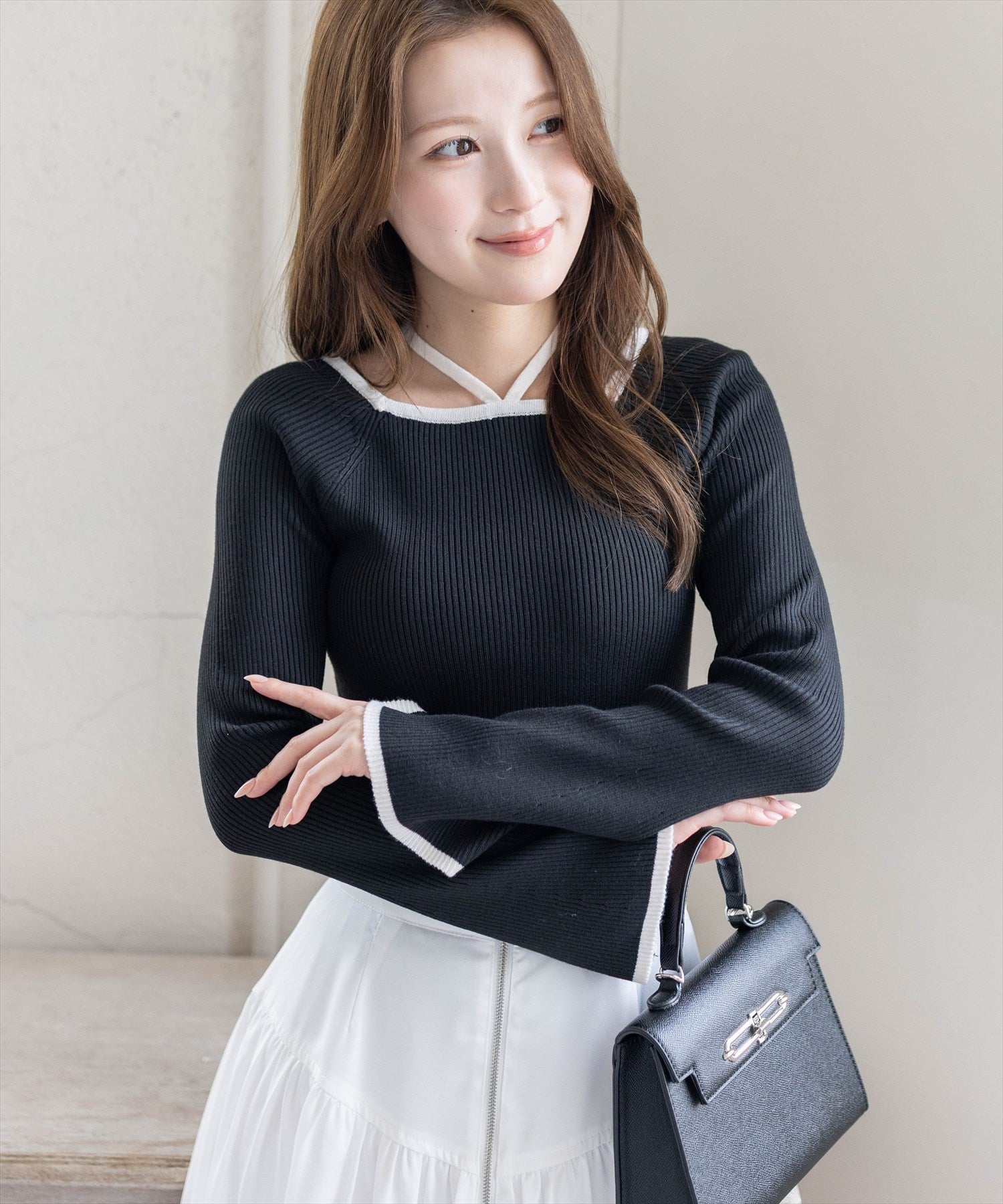 clear≪新色追加≫チュールリボンデザインニットトップス[CL9146]