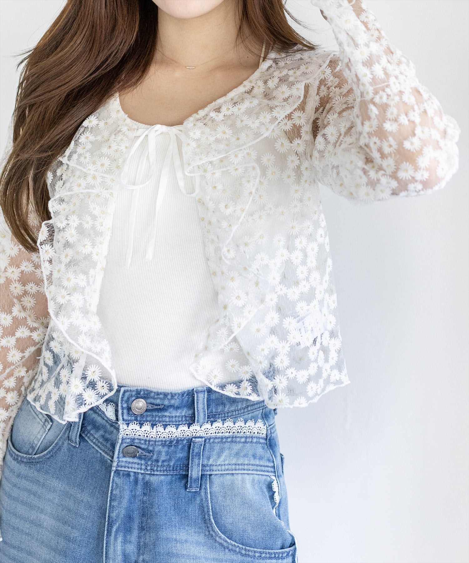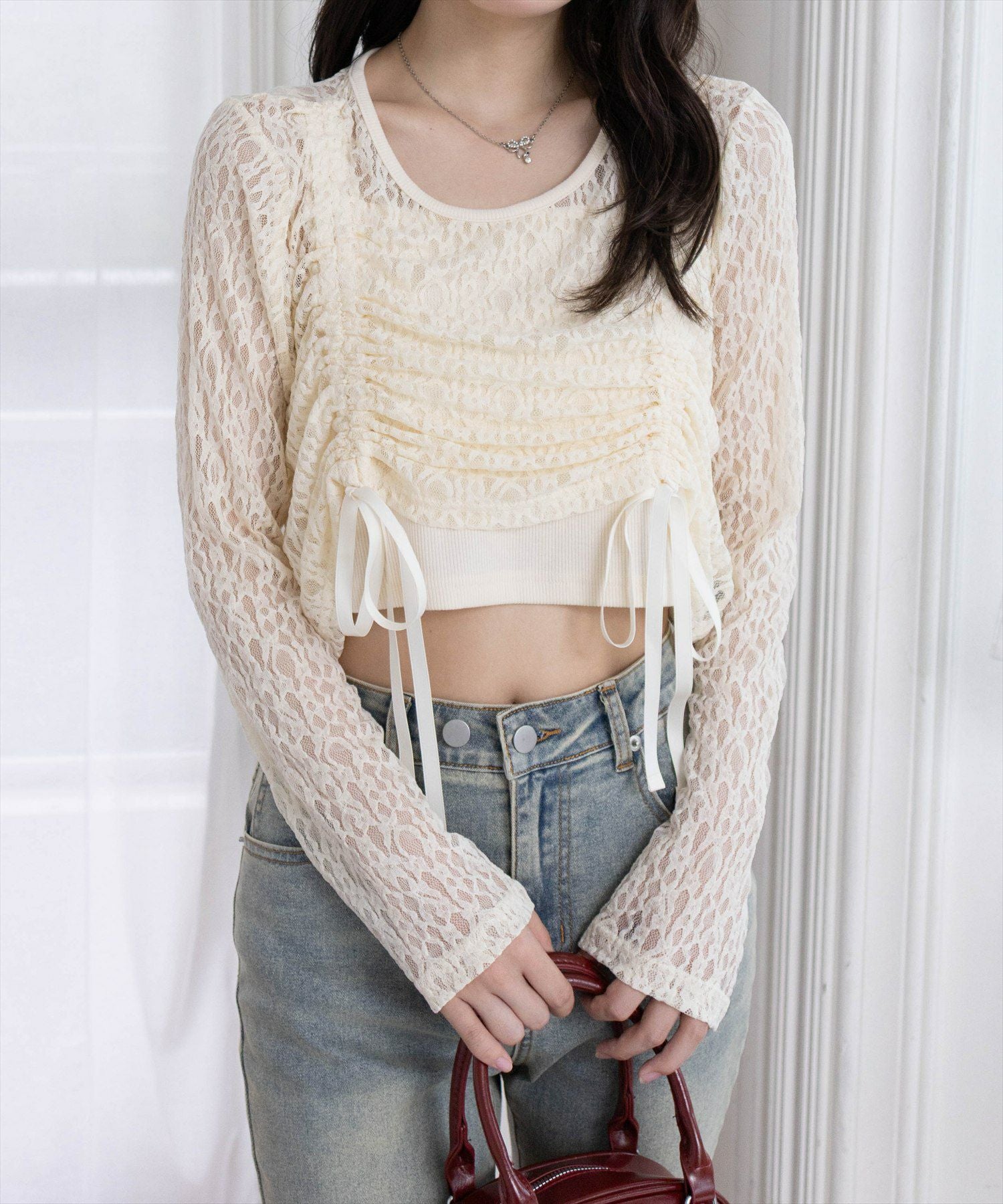 STAY MOTION≪WEB限定/新作≫レースドッキングフロントリボンカットソートップス[ST1141]