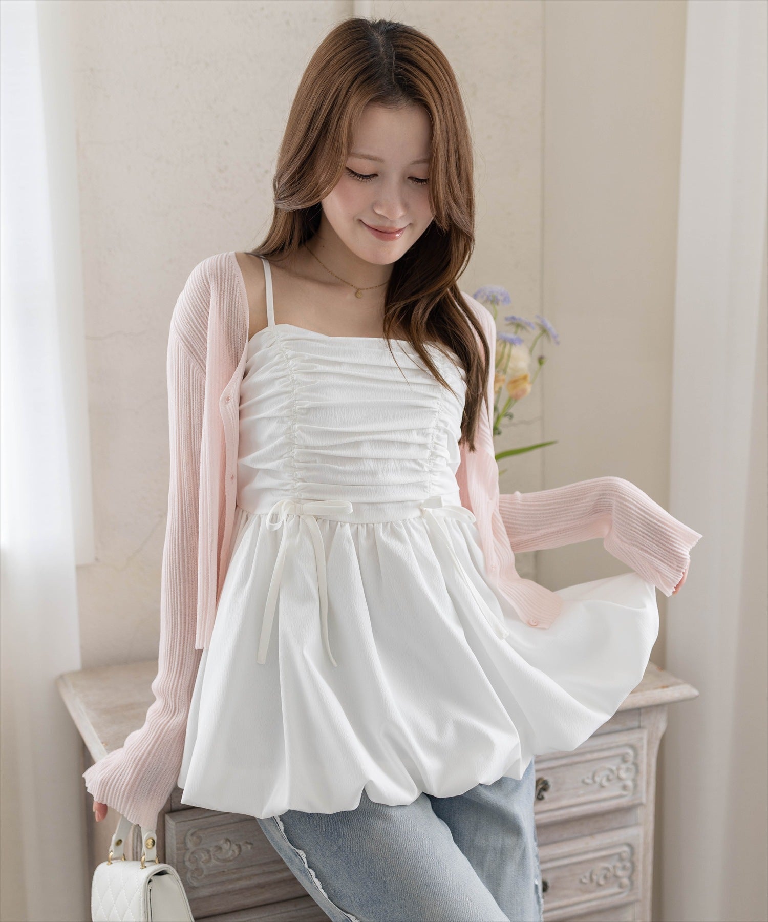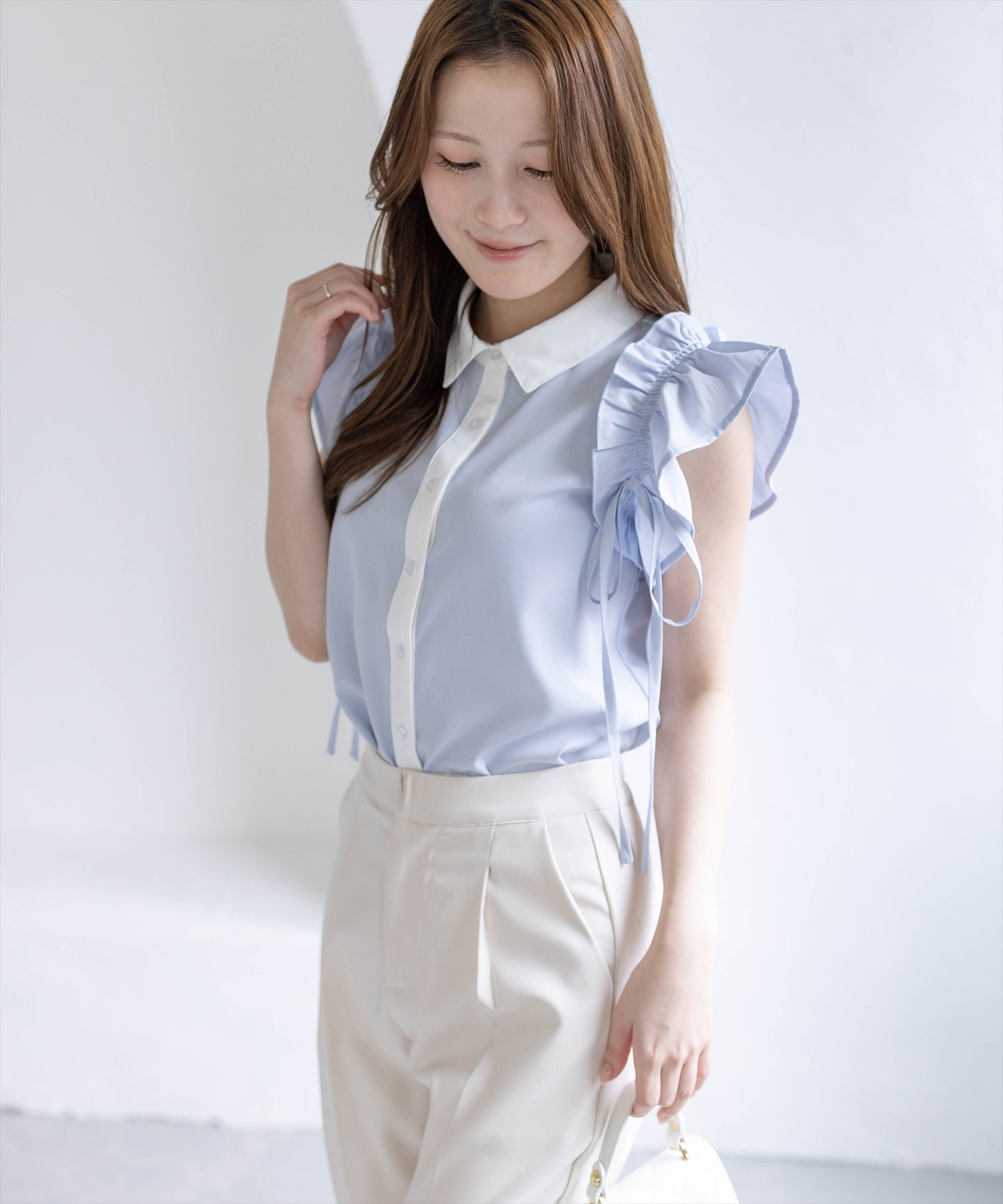 CLEAR BASIC≪新色追加≫リボン付きフリルノースリーブブラウス[CL9110]