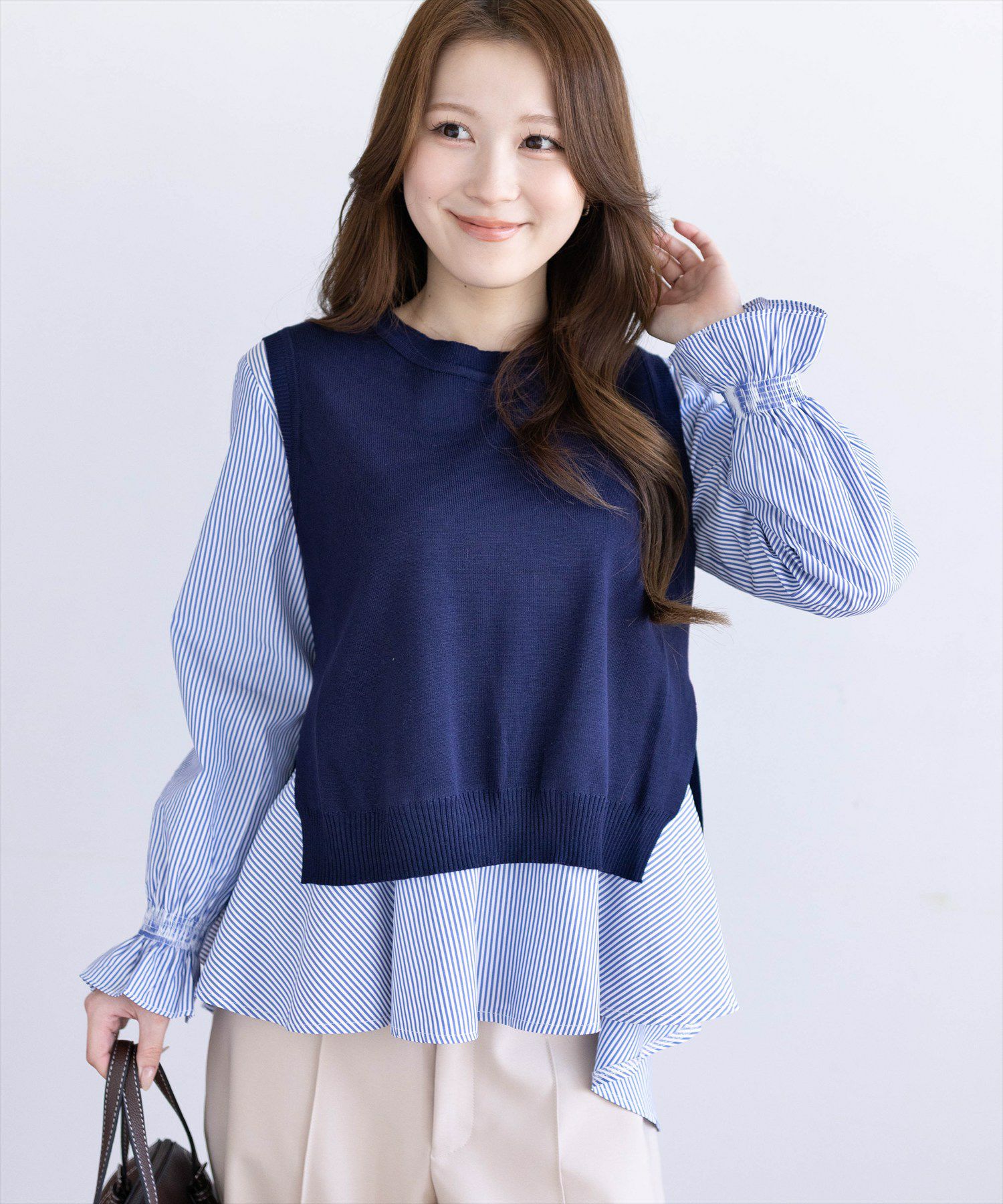 STAY MOTION≪WEB限定/新作≫ストライプ柄シャツドッキングカットソー[ST1137]