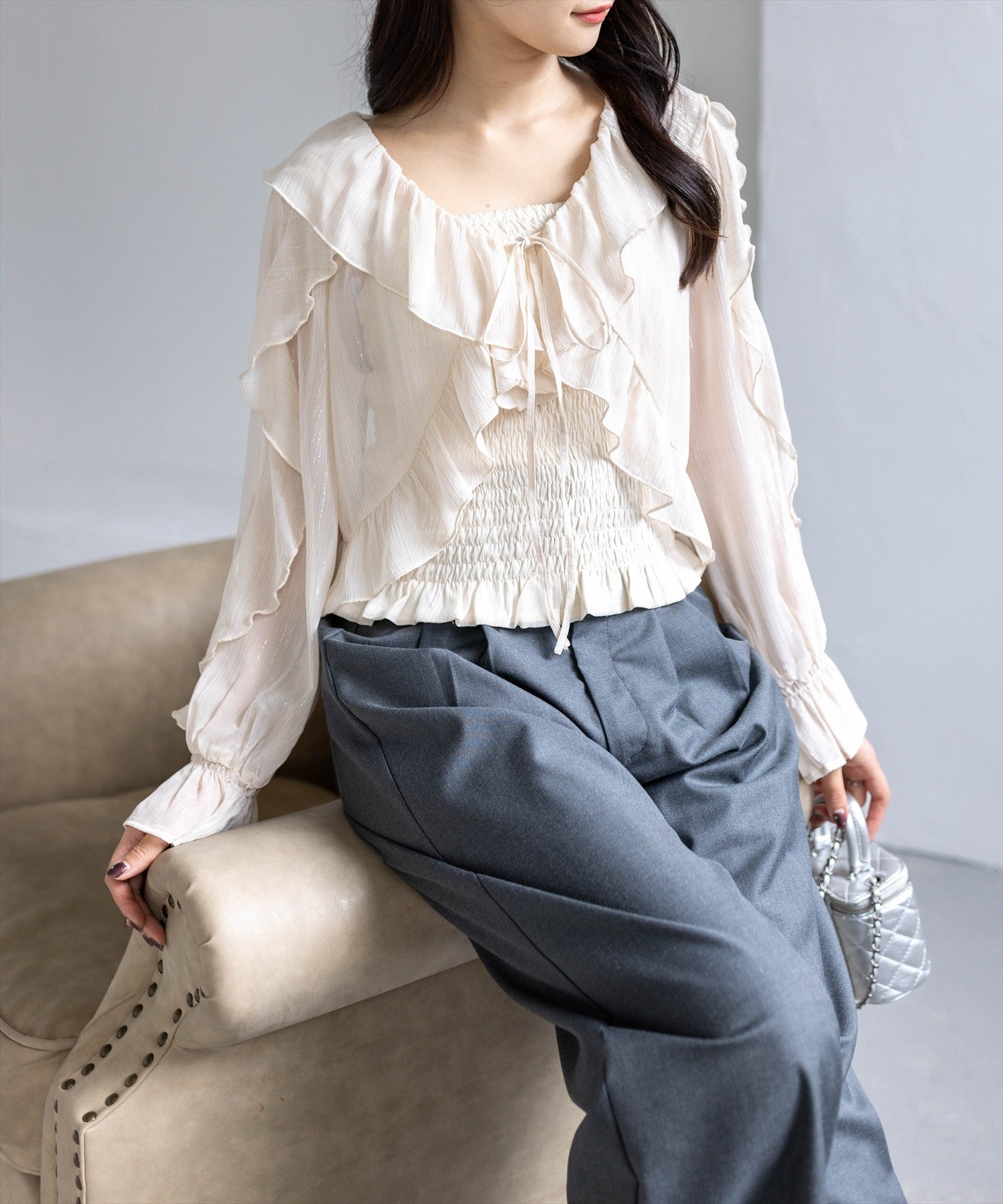 clear≪新作≫フロントフリルオフショル長袖ブラウス[CL9544]