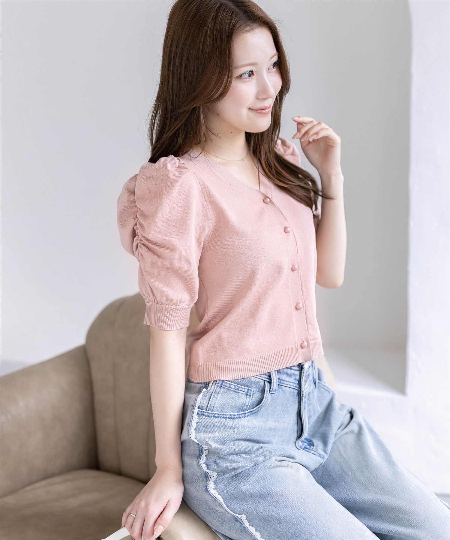 CLEAR BASIC≪新作≫パフスリーブビジューボタンニットカーディガン[CL9718]
