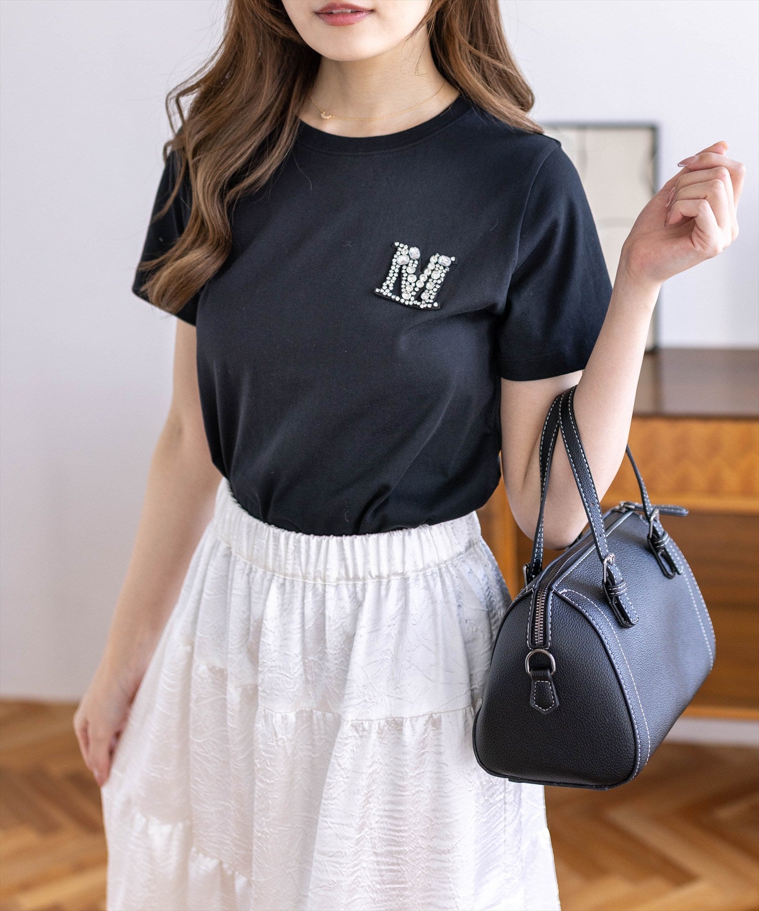 CLEAR BASIC≪新作≫フレンチスリーブパール付きプリントロゴTシャツ[CL9699]