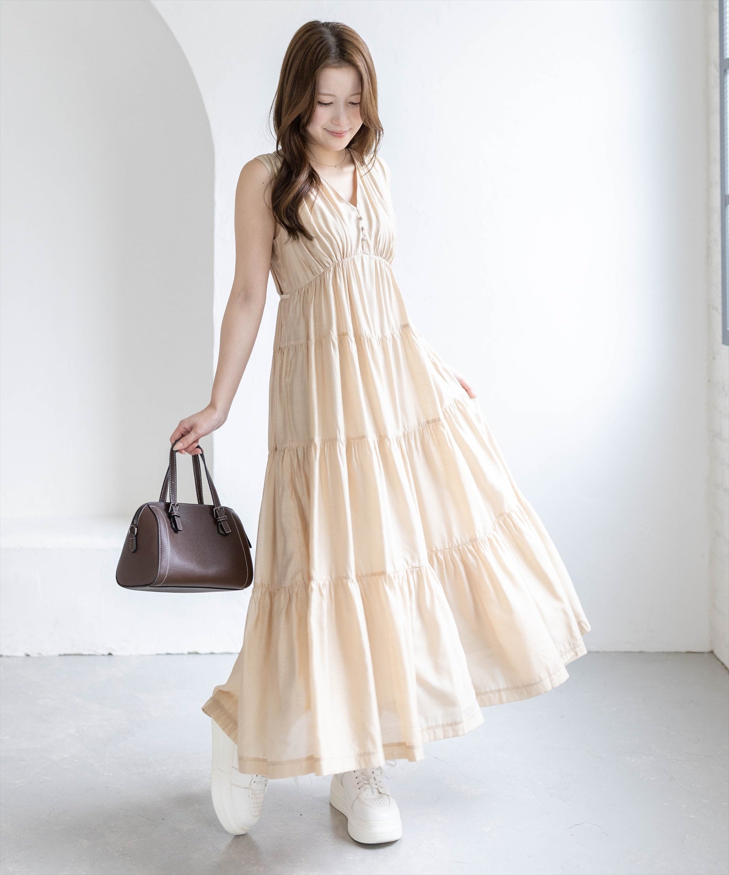 CLEAR BASIC≪WEB先行販売/新作≫Vネックノースリーブティアードワンピース[CL9740]