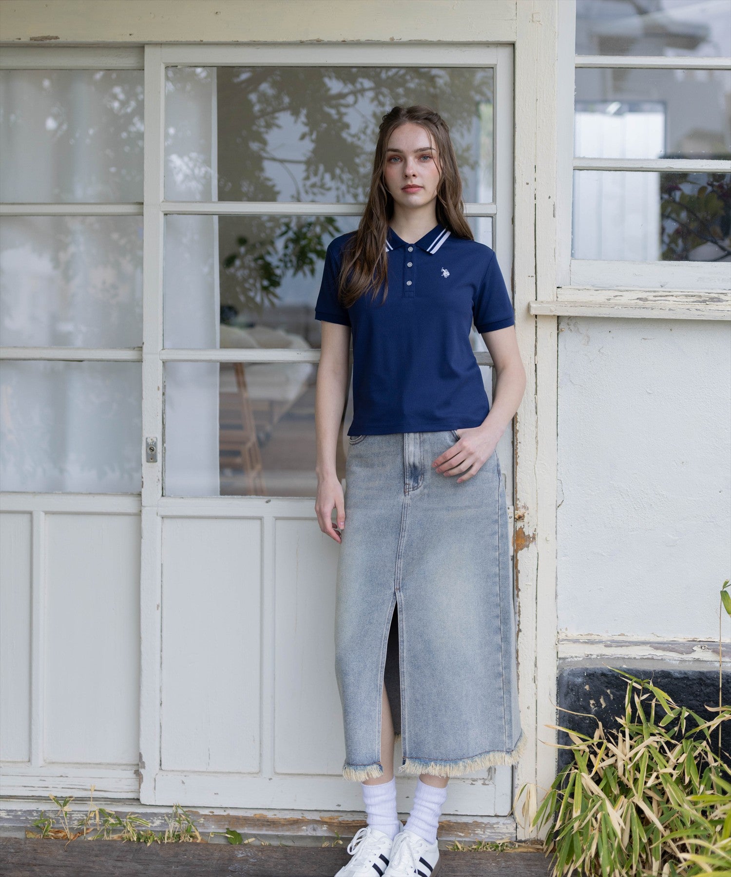 clear≪新作≫襟付デニム切替カットソートップス[CL9862]