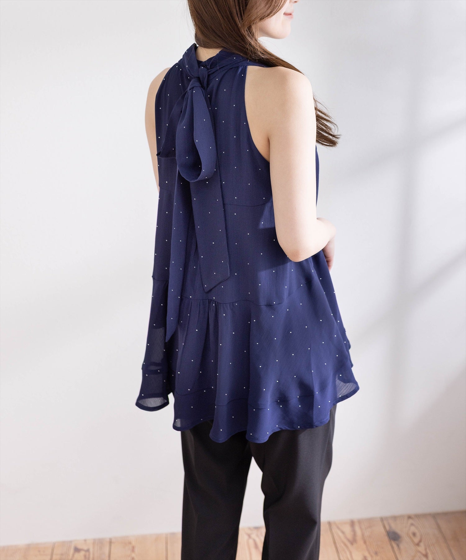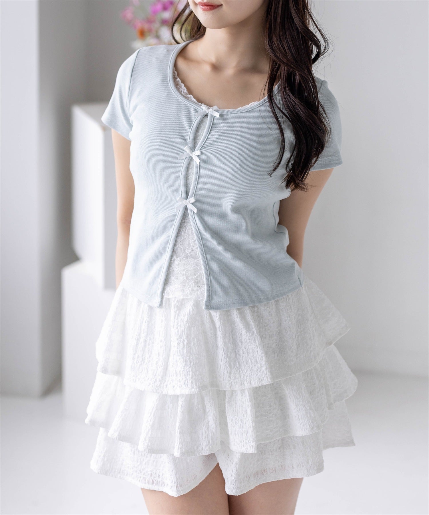 CLEAR BASIC≪新作≫ラインストーン付きボウタイリボンティアードブラウス[CL9756]