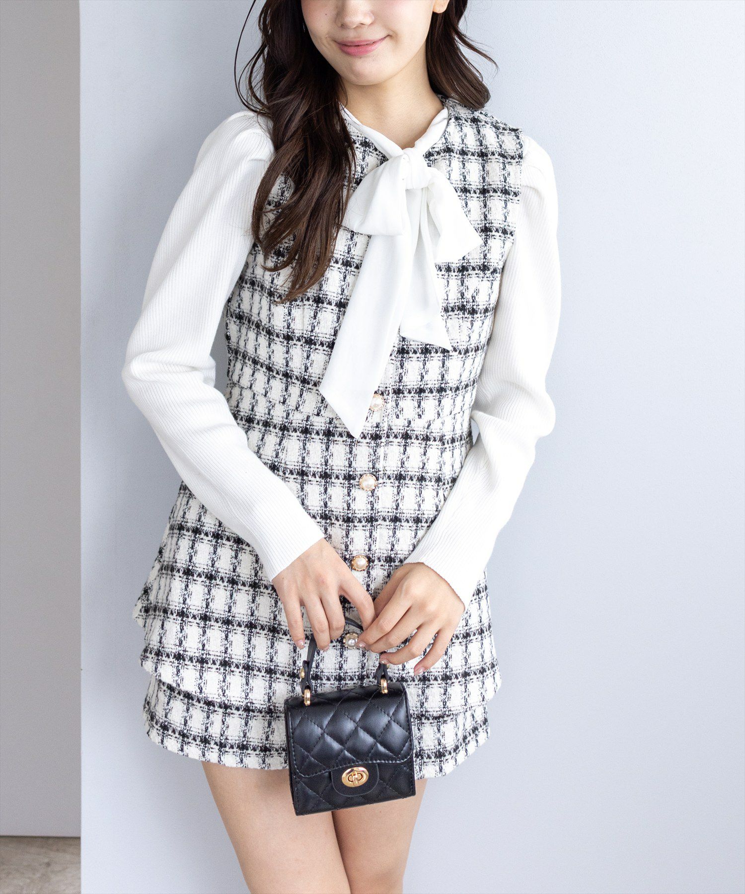 CLEAR BASIC≪新作≫シャーリング切替アシンメトリーチェック柄チュールスカート[CL9606]