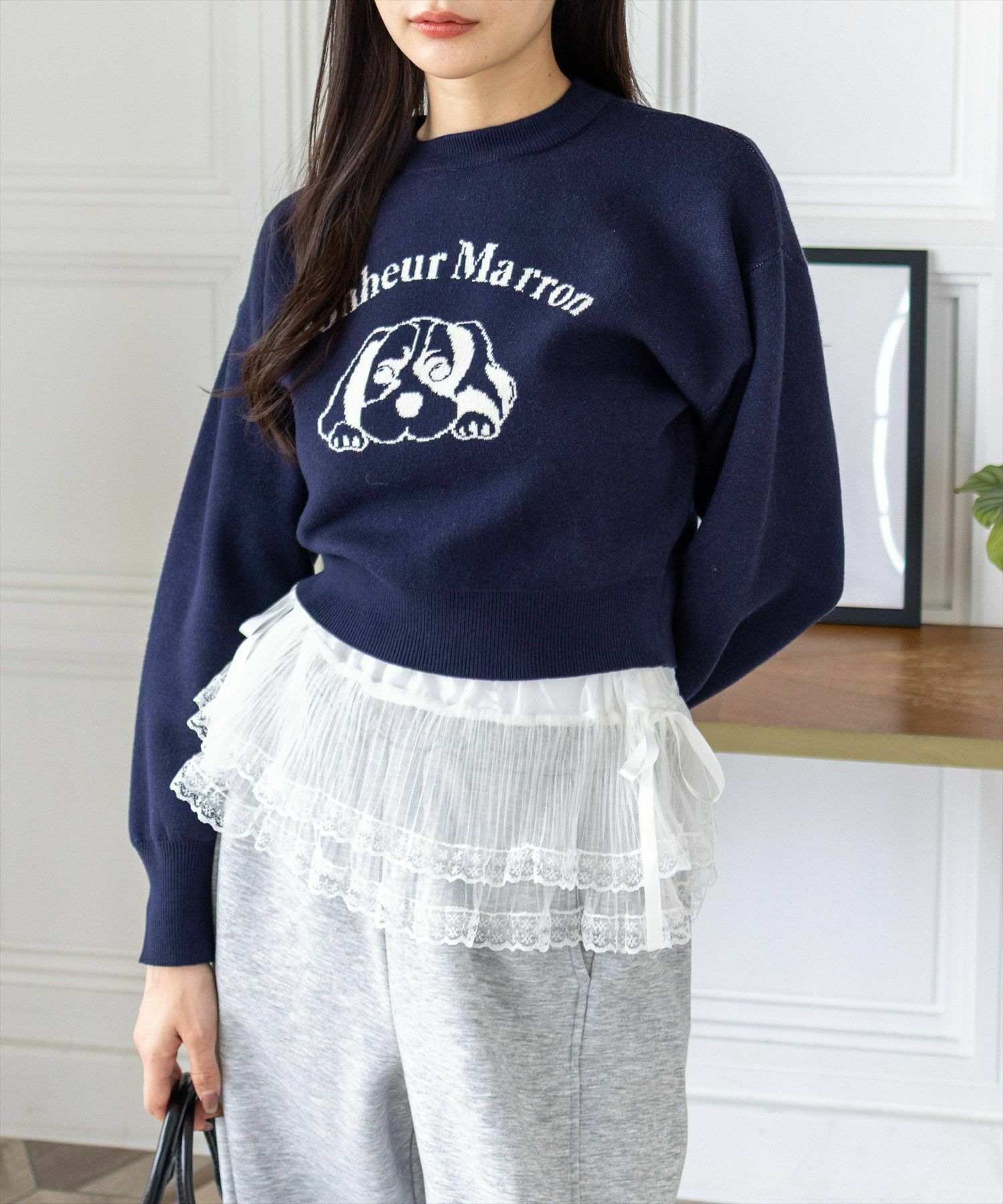 clear≪WEB先行販売/新作≫フロントリボンリボン付きレースレイヤードカットソー[CL9719]