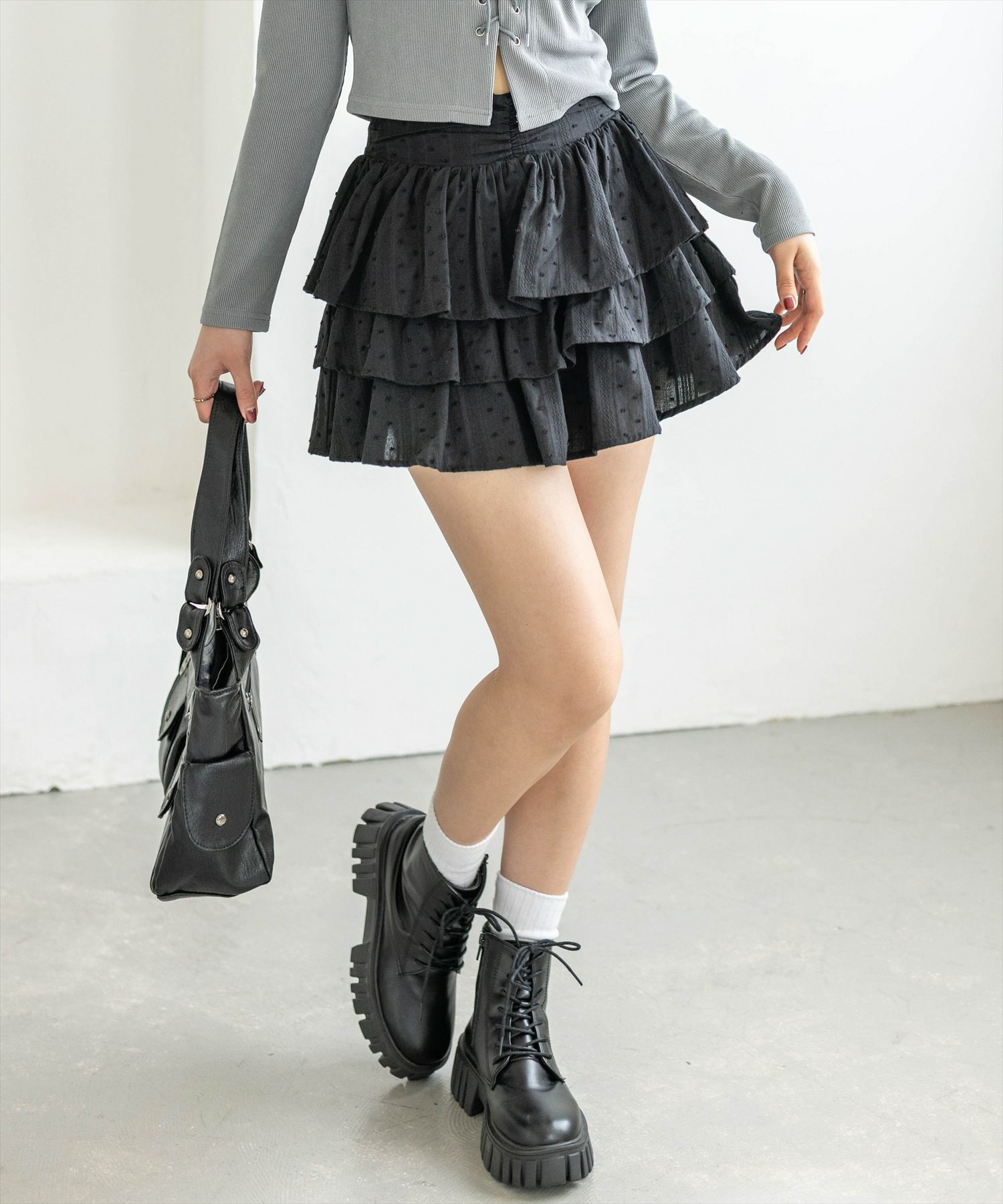 clear≪新作≫ウエストギャザー3段ティアードミニスカート[CL9596]