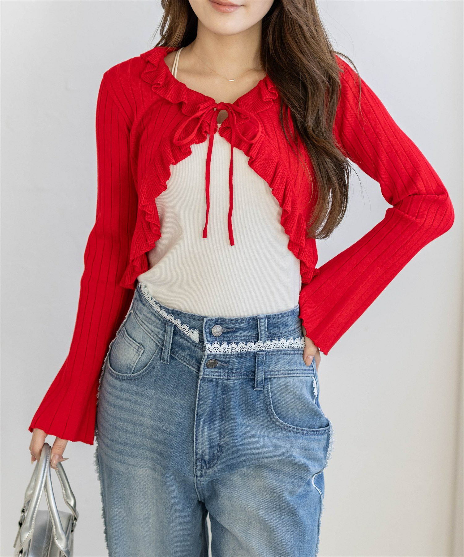clear≪新作≫配色カーディガン&フロントリボンキャミソールセット[CL9655]