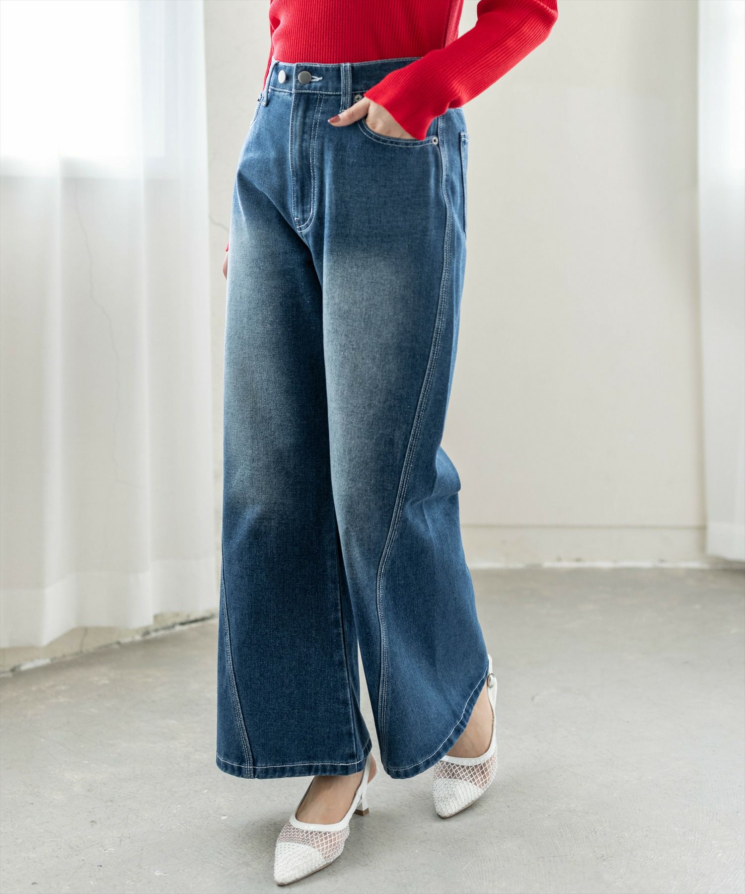clear≪WEB先行販売/新作≫サイドリボンワイドデニムパンツ[CL9638]
