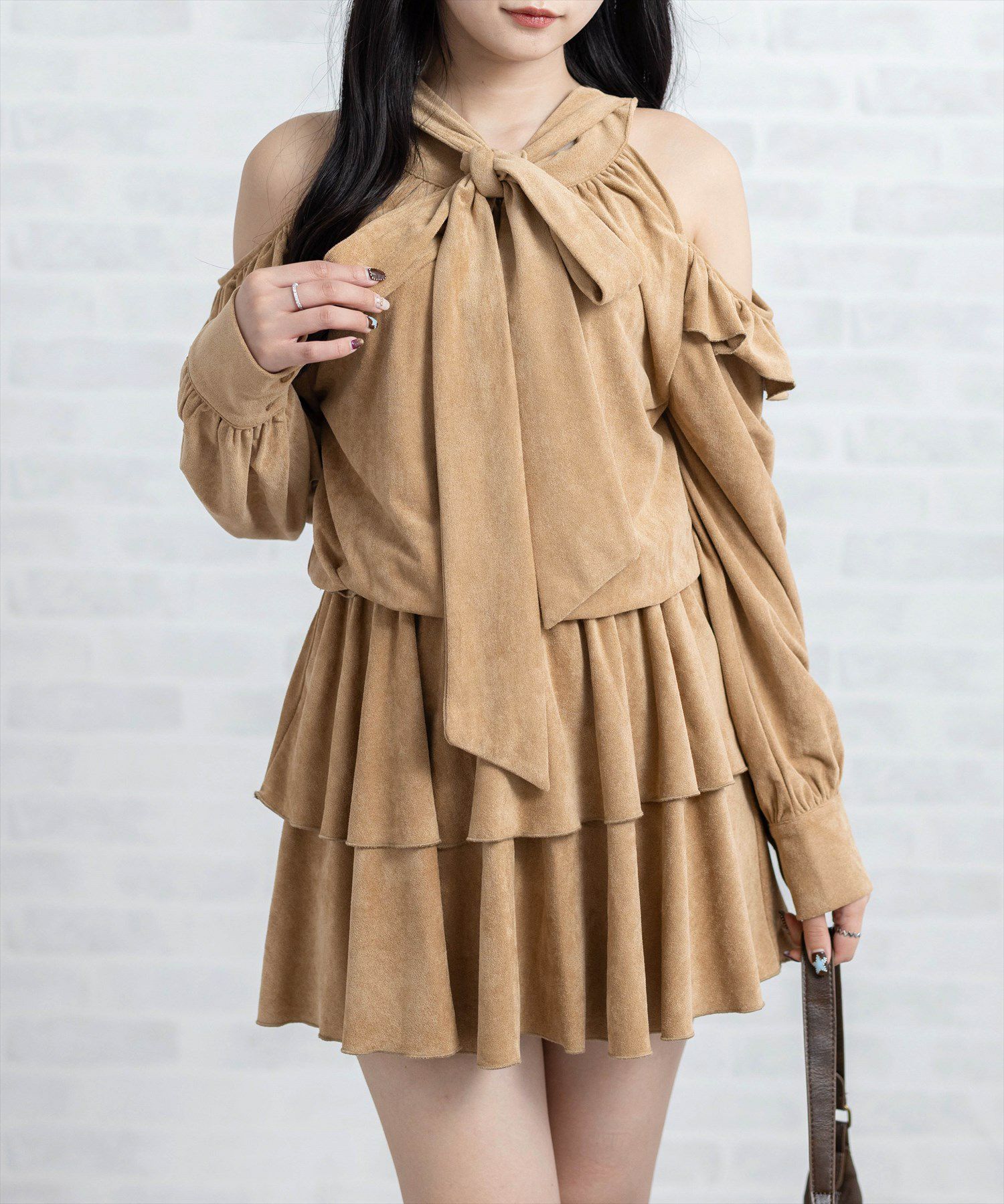 clear≪AW新作≫2wayリボンフェイクスエード長袖ミニワンピース[CL9539]