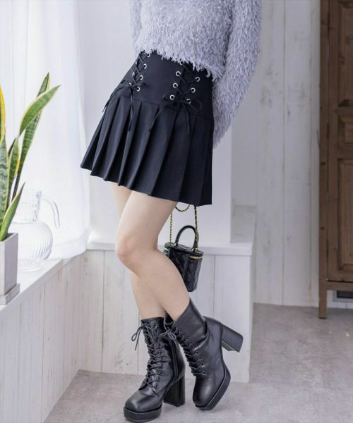 clear サイドリボンハーフプリーツミニスカート[CL8185]
