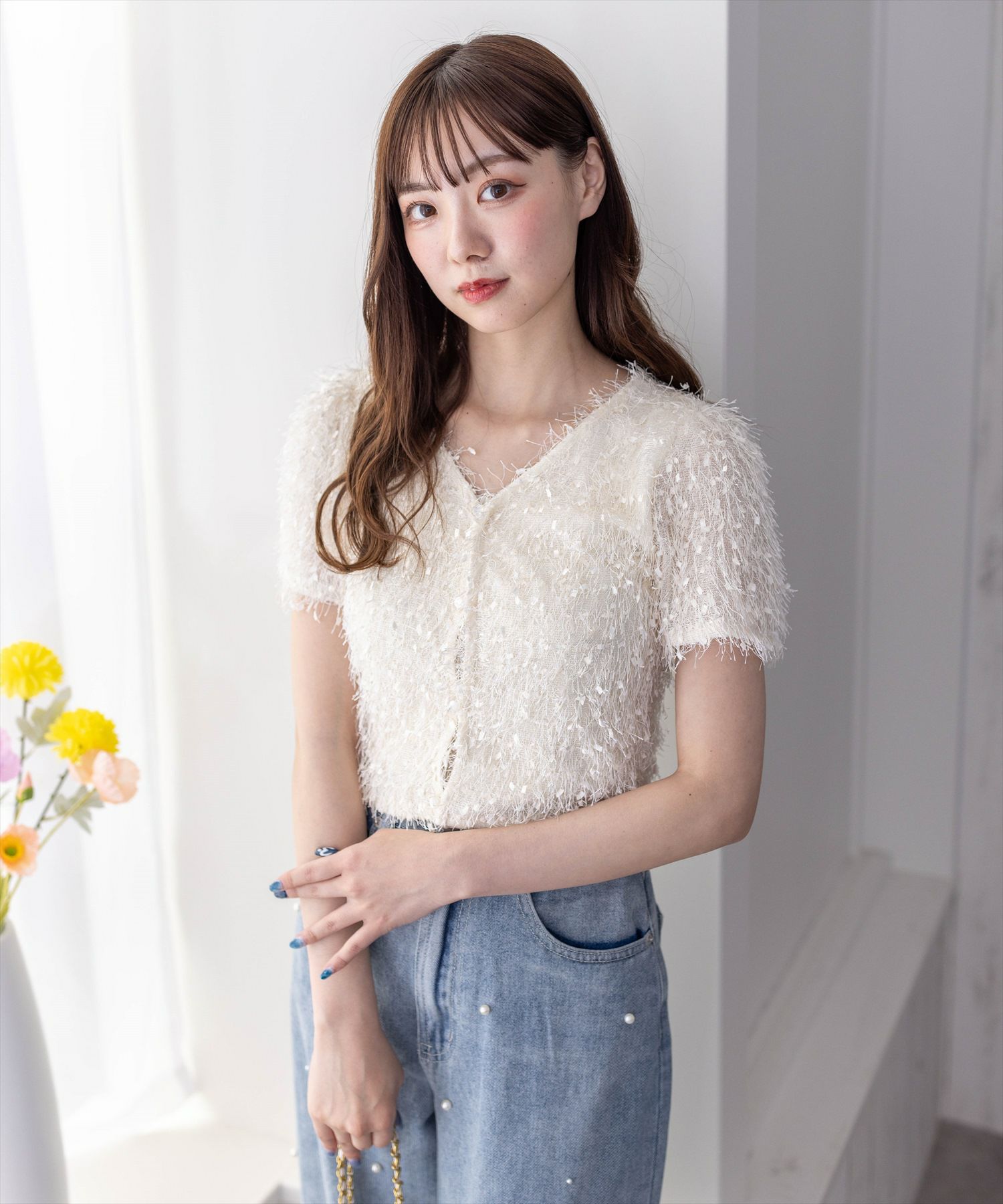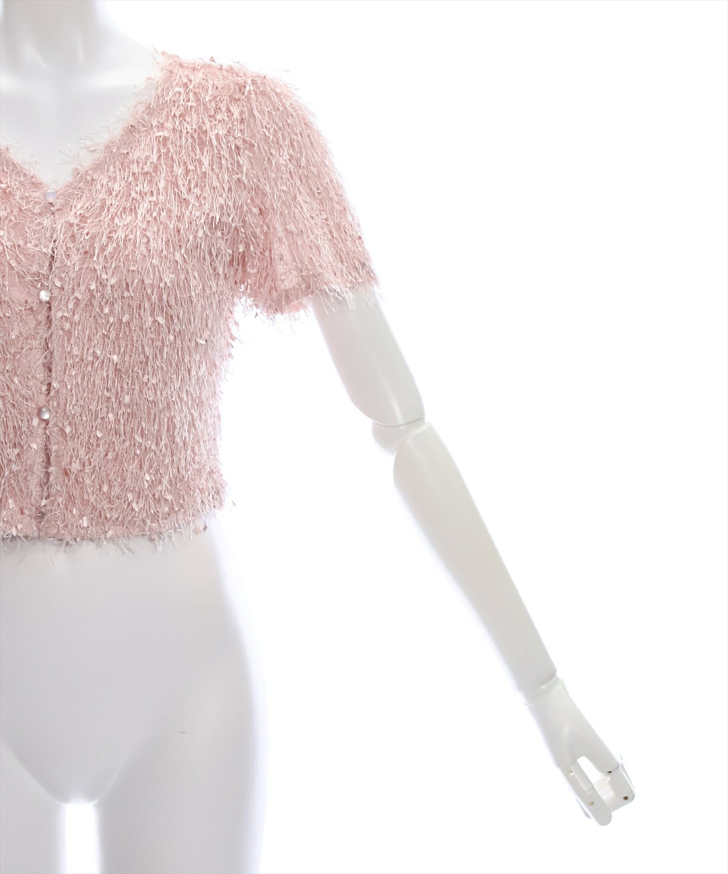 clear フリンジショート丈半袖カーディガントップス[CL8547]