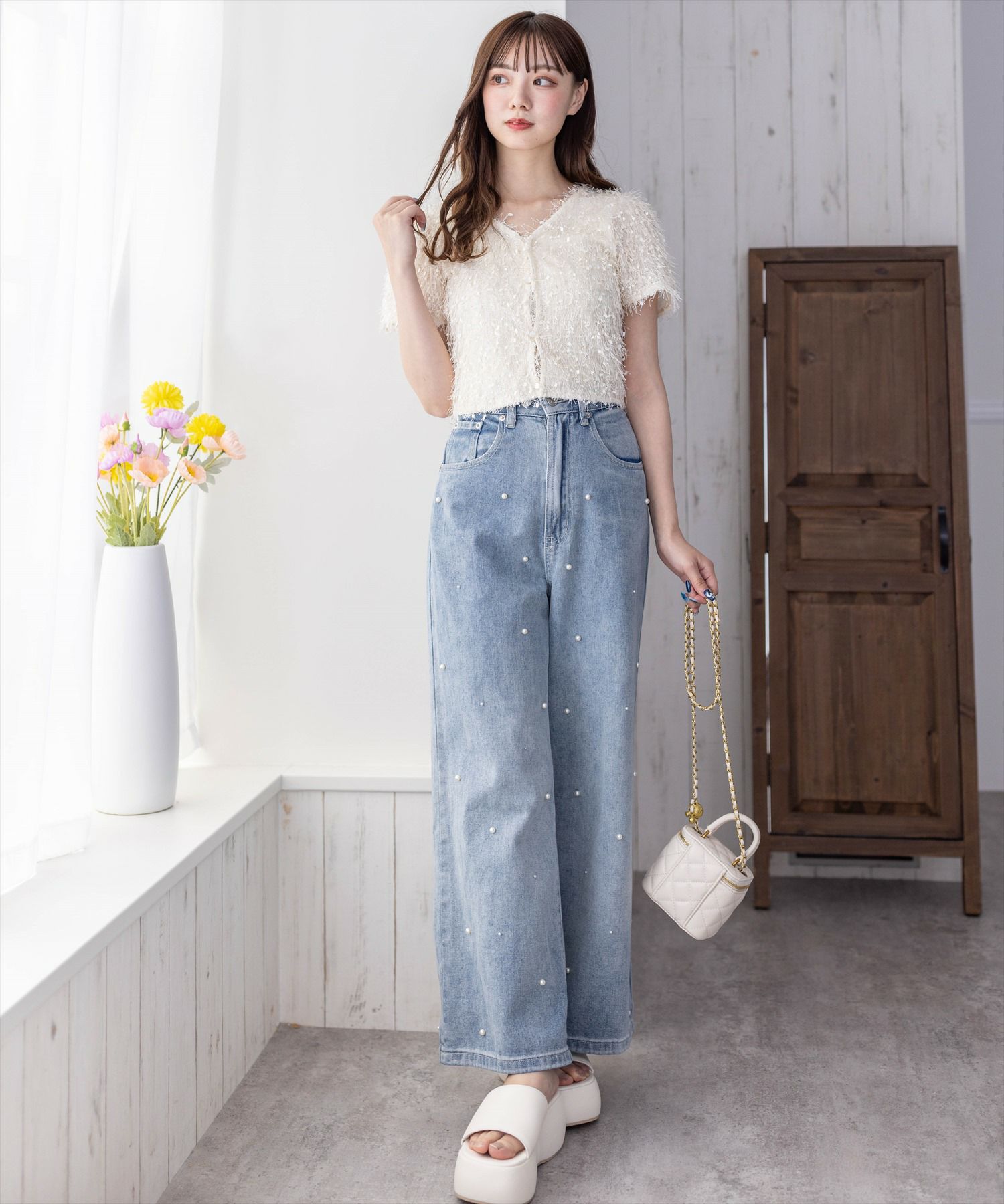 clear≪再入荷≫ラインストーンワイドデニムパンツ[CL8320]