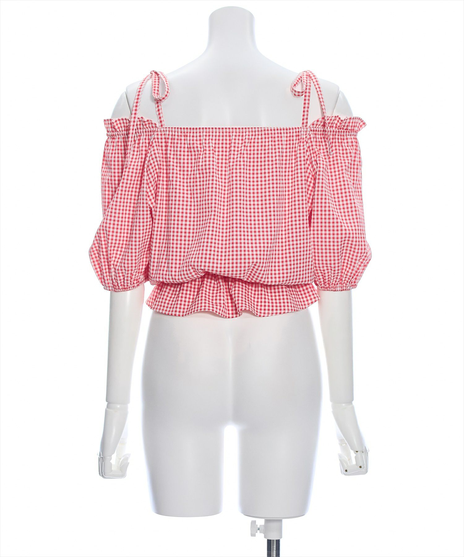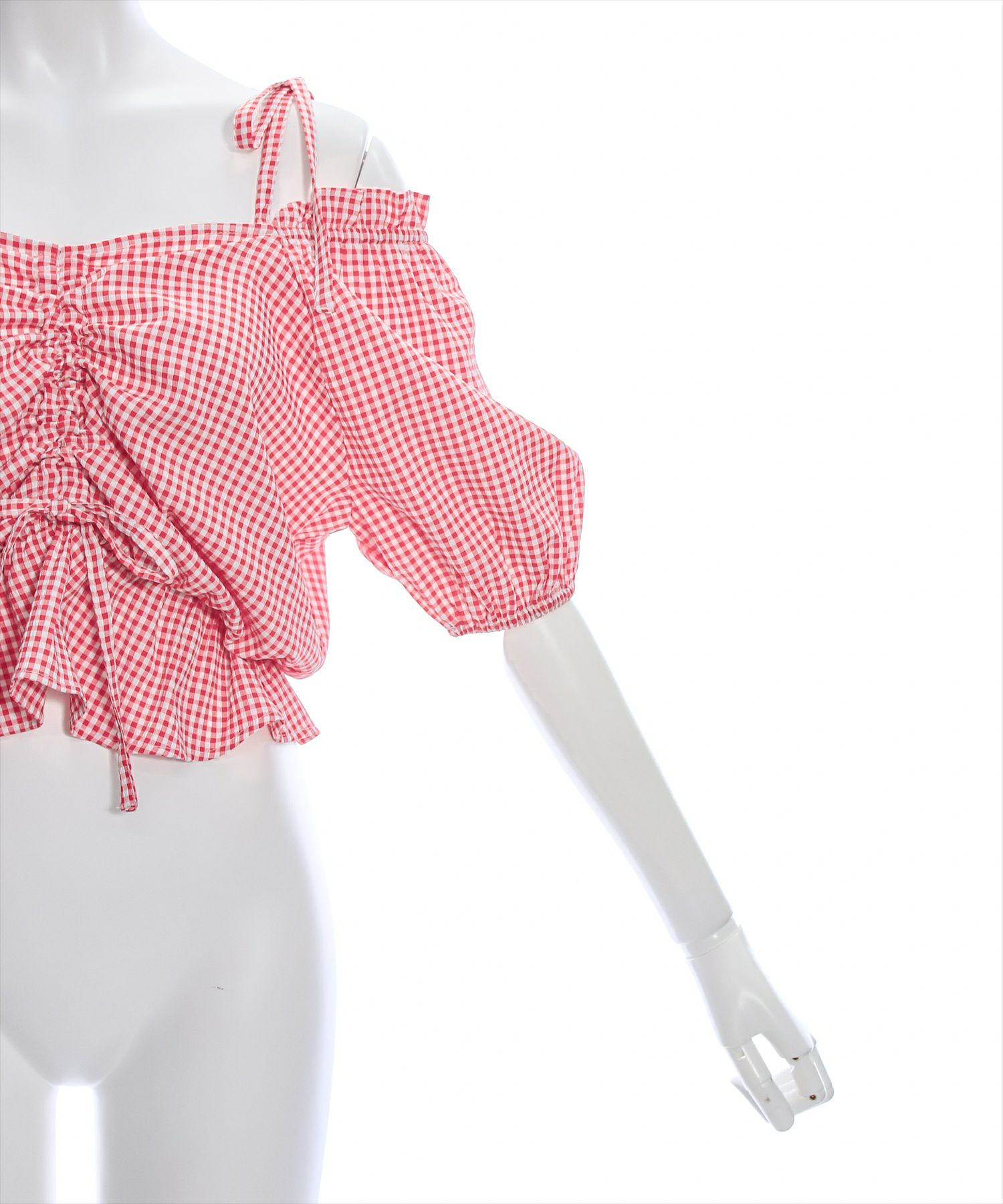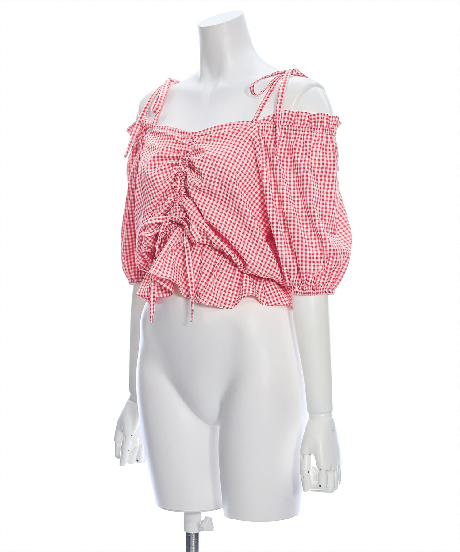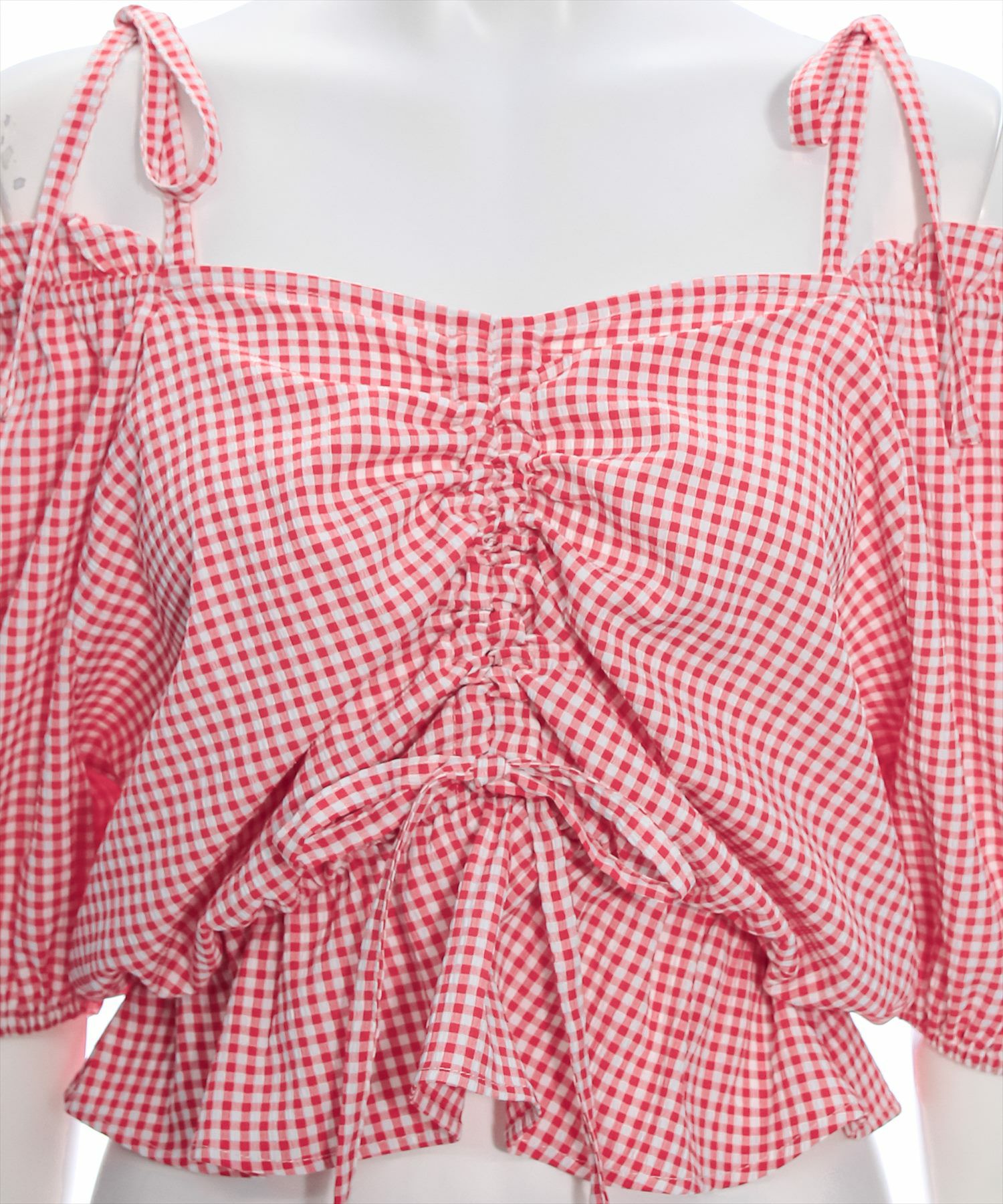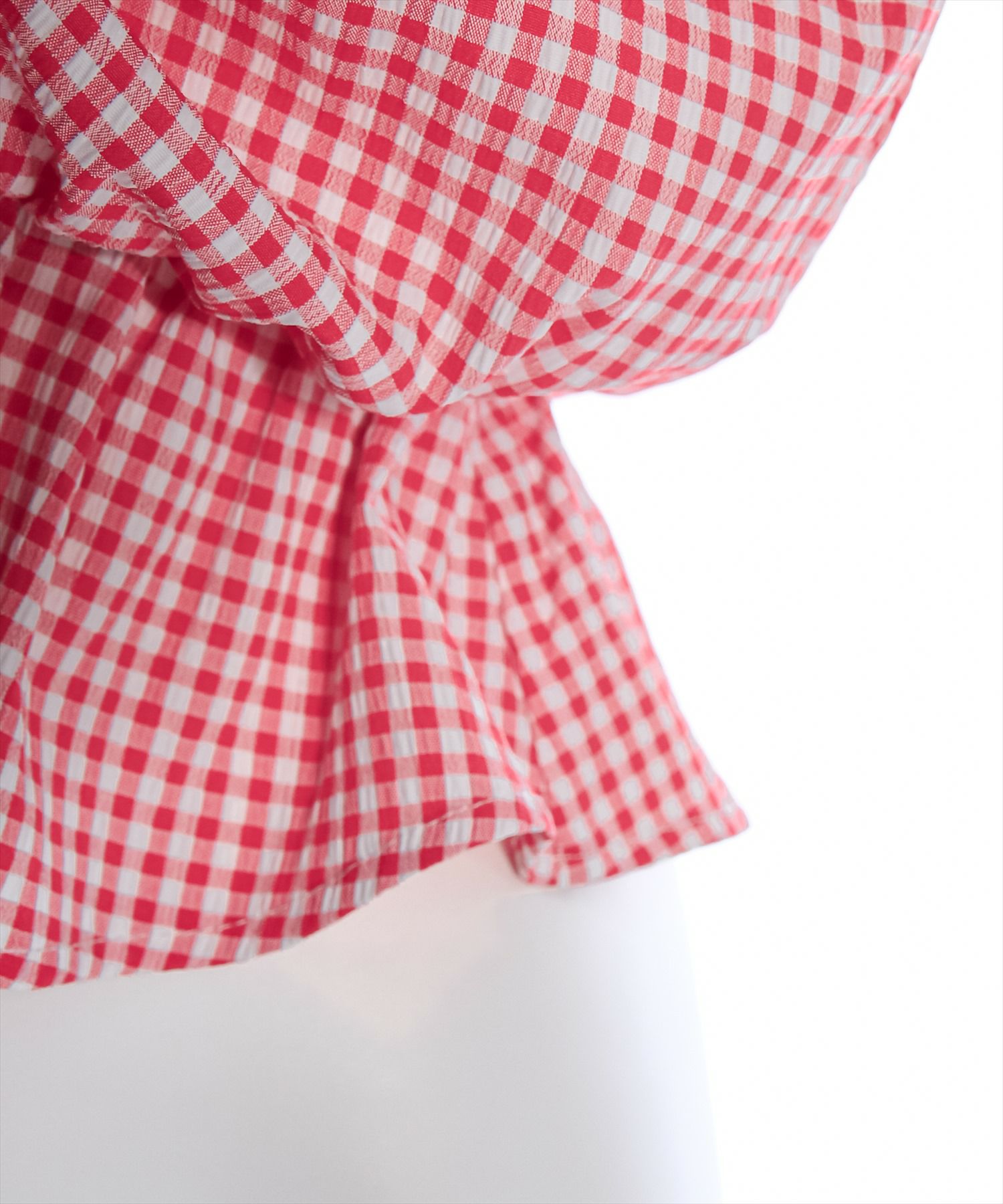 clear シアーチェックフロントギャザー半袖ブラウス[CL8345]