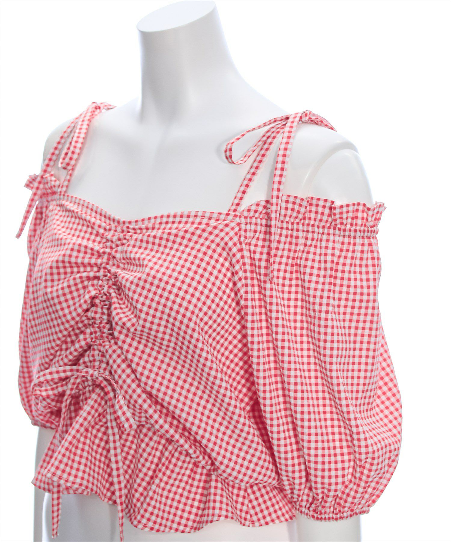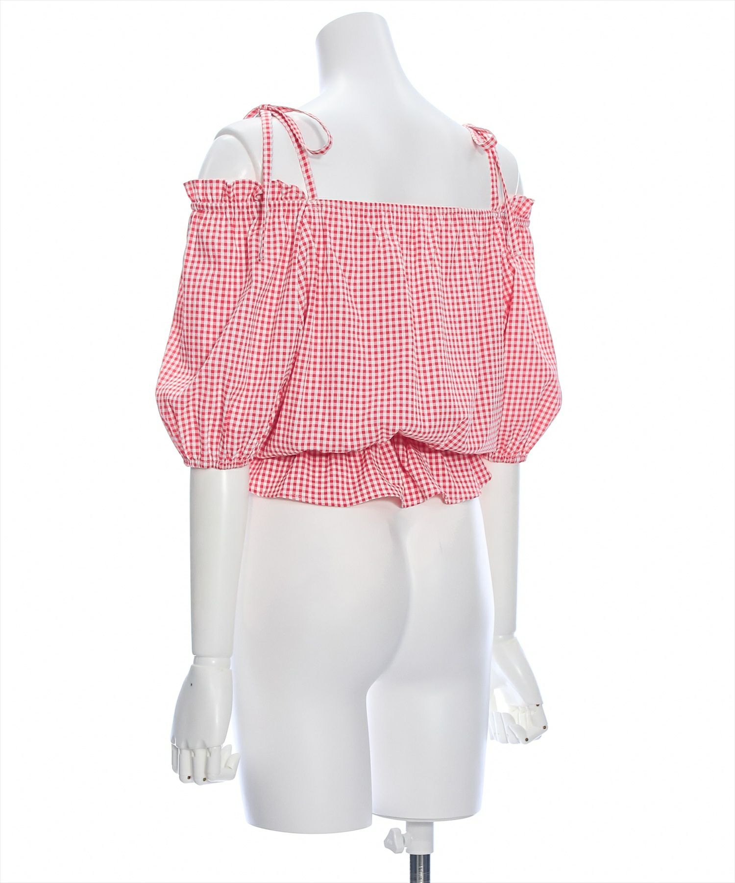 clear 裾バルーンフロントギャザーリボン5分袖ブラウス[CL8584]