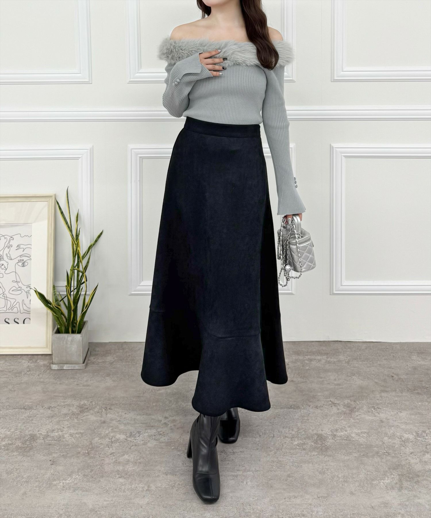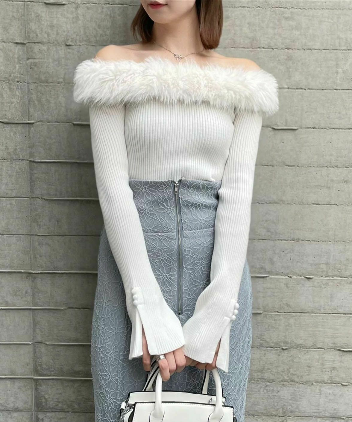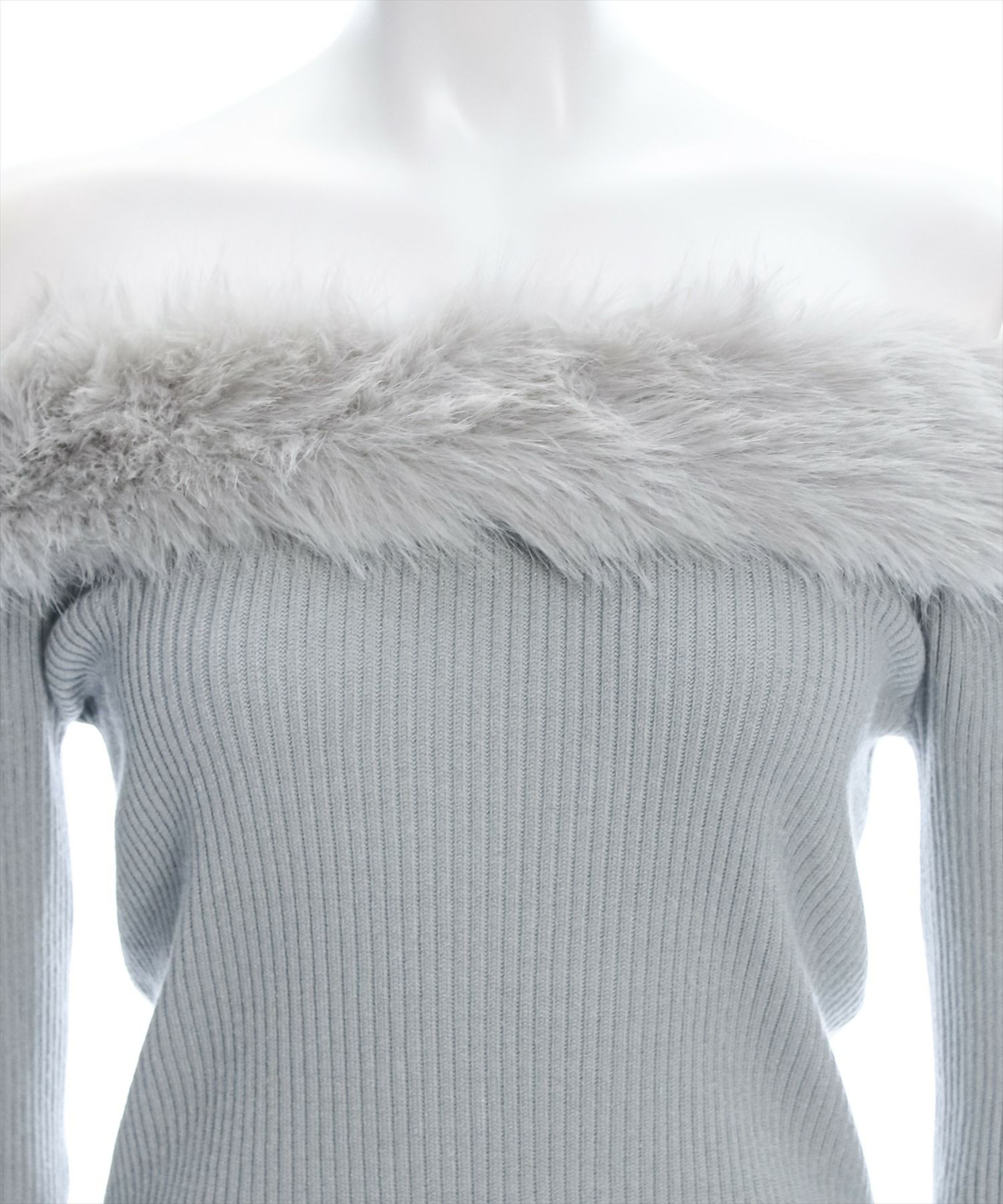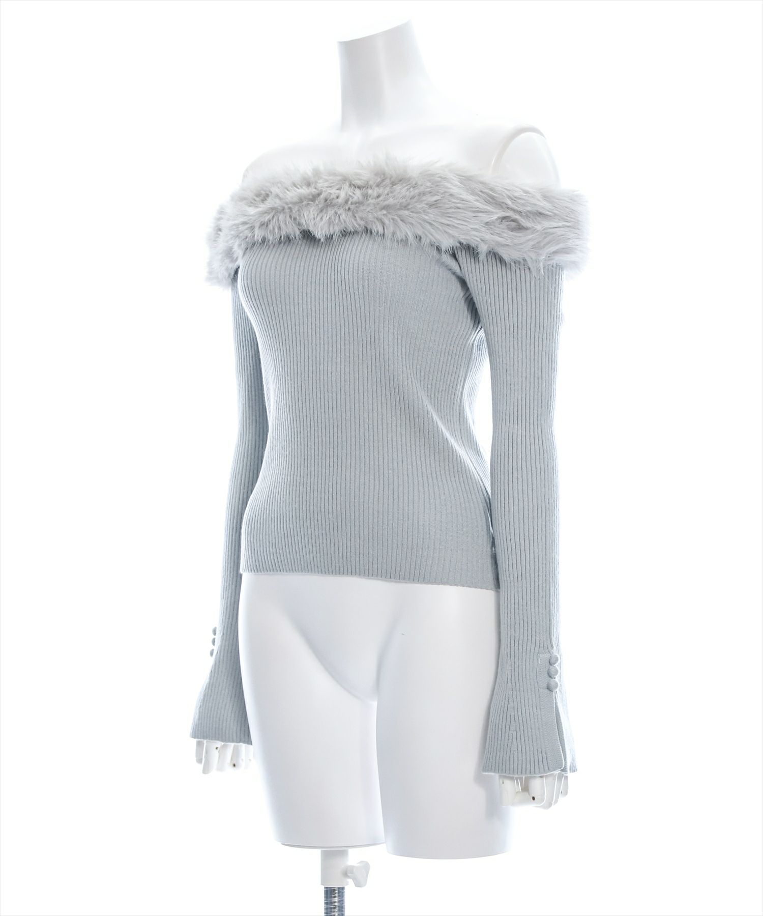clear 袖スリットファーオフショルニットトップス[CL8430]