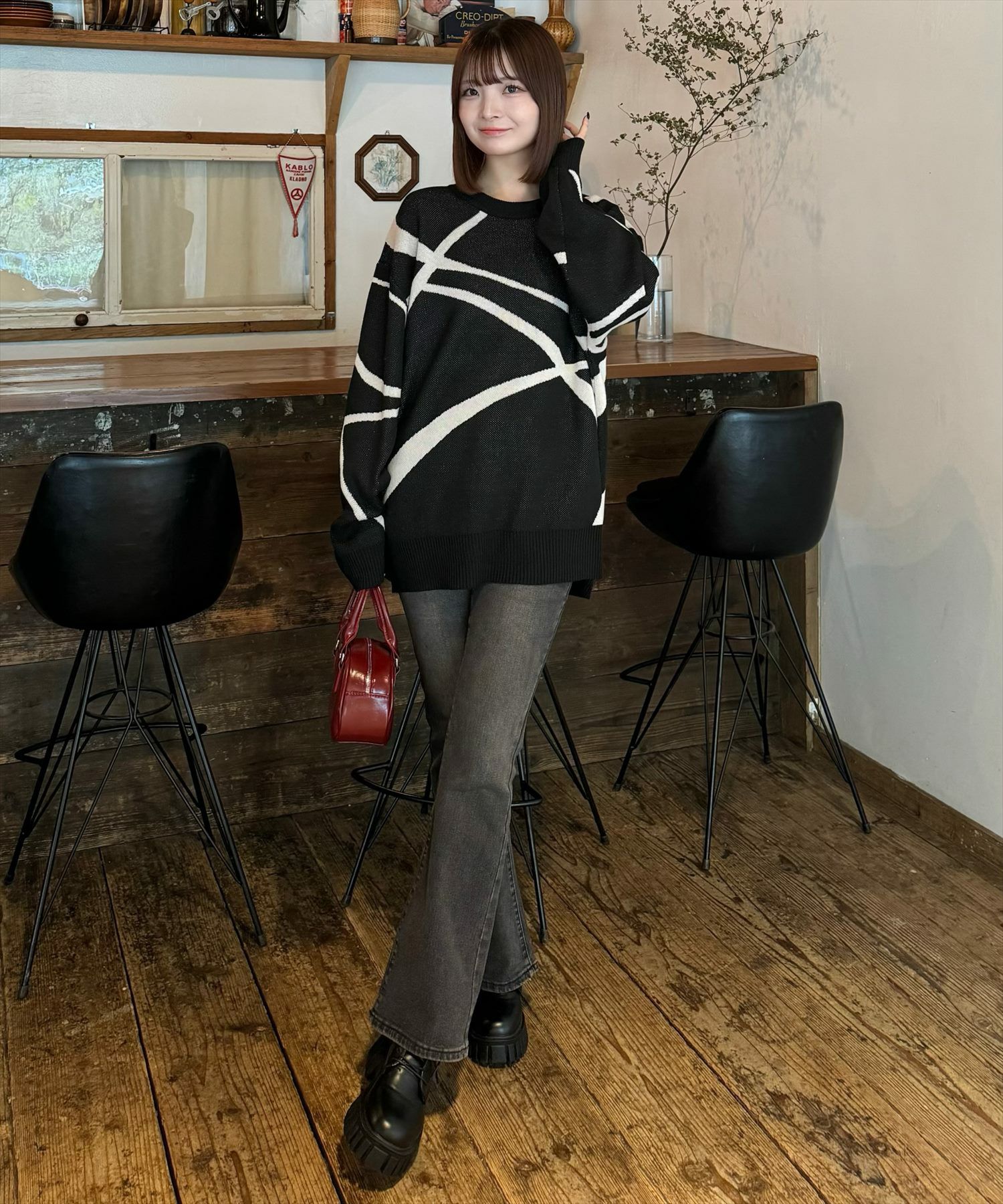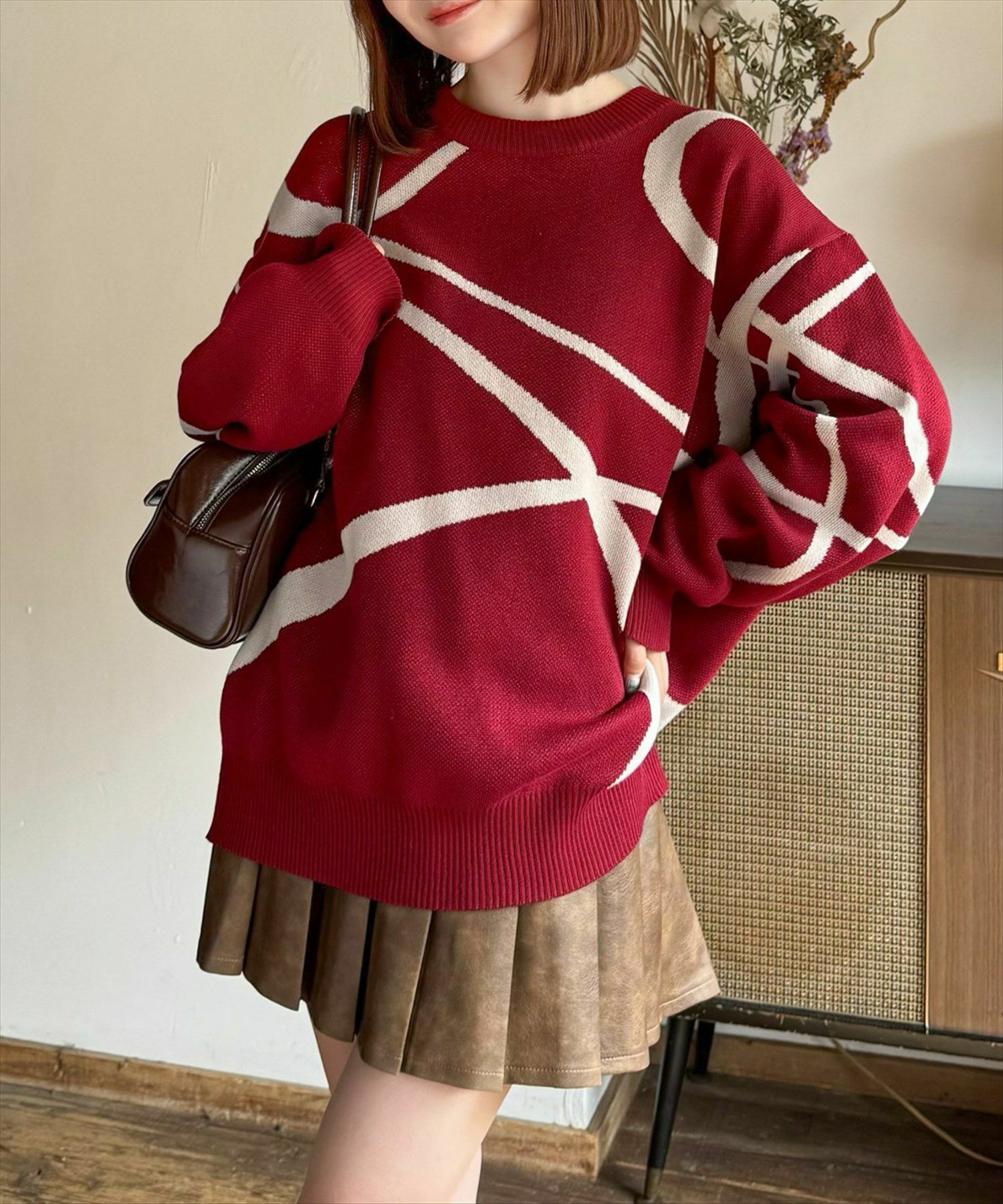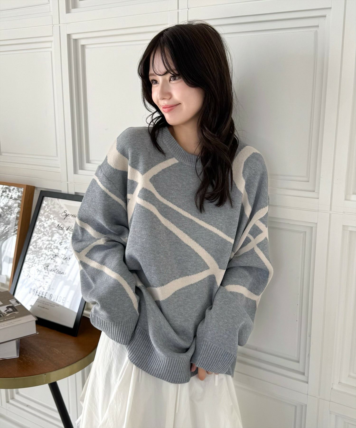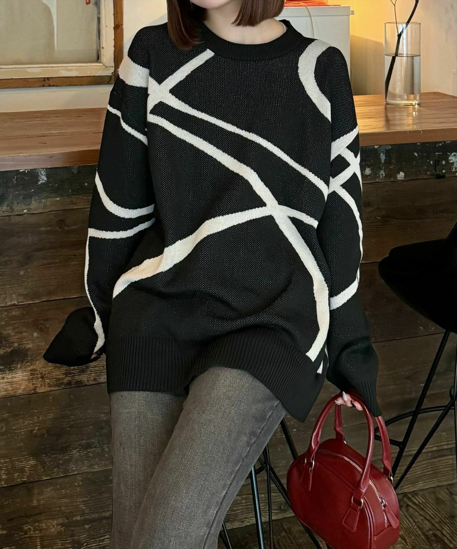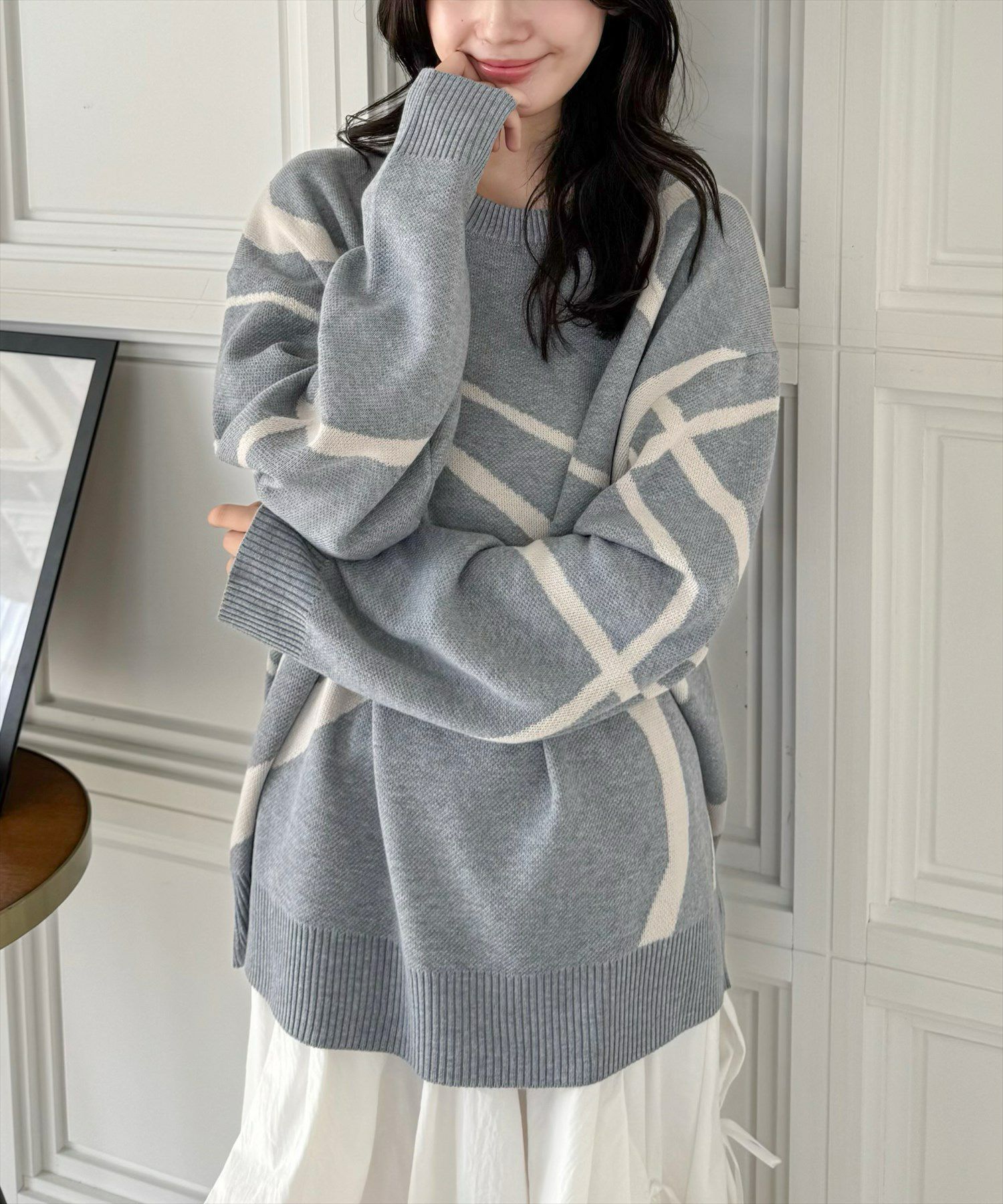 clear ライン柄ジャカードオーバーニットトップス[CL8849]