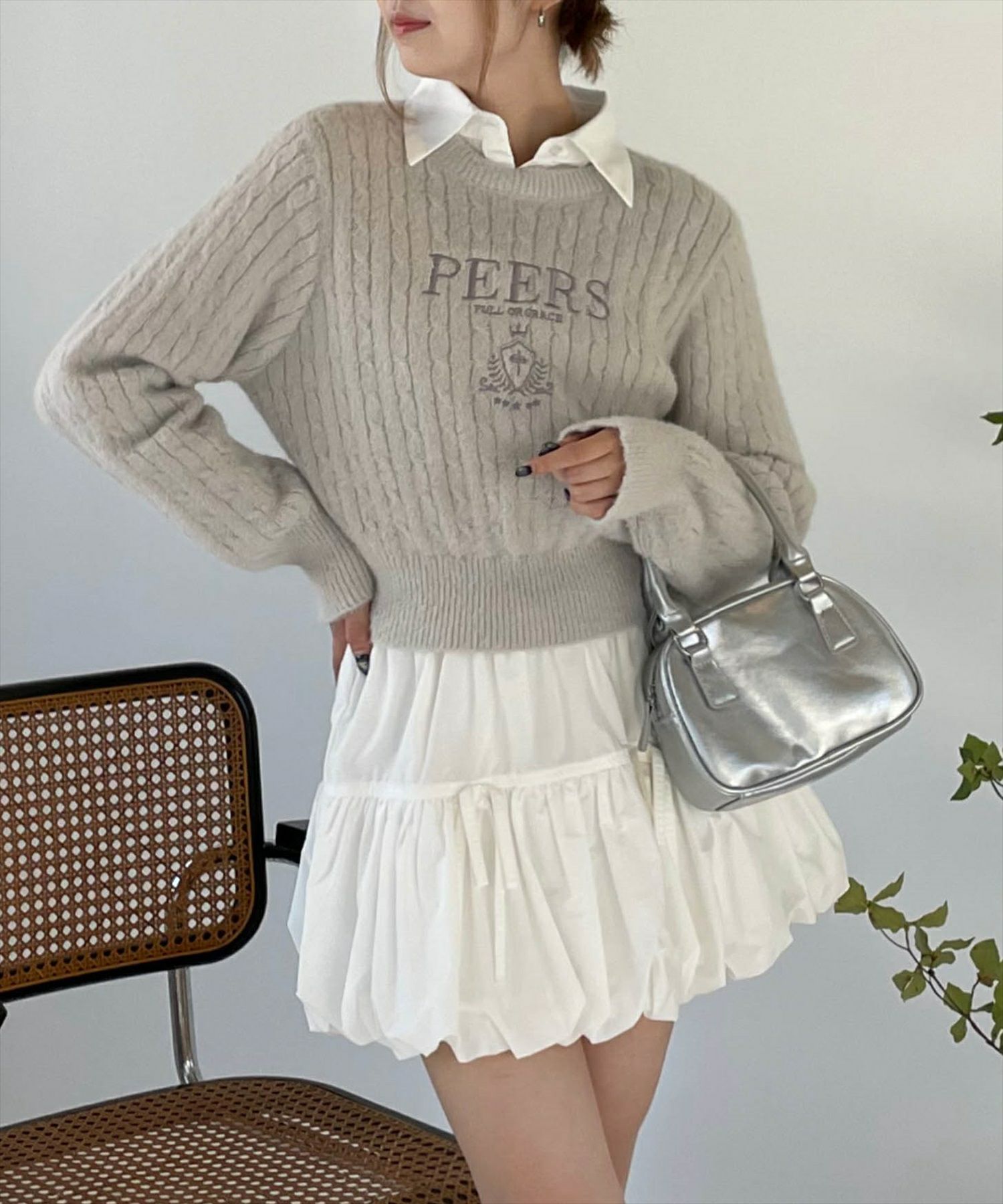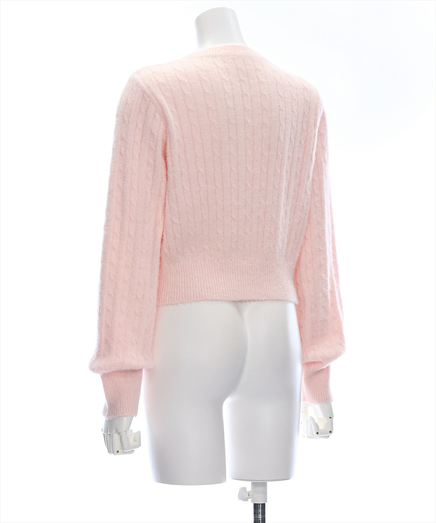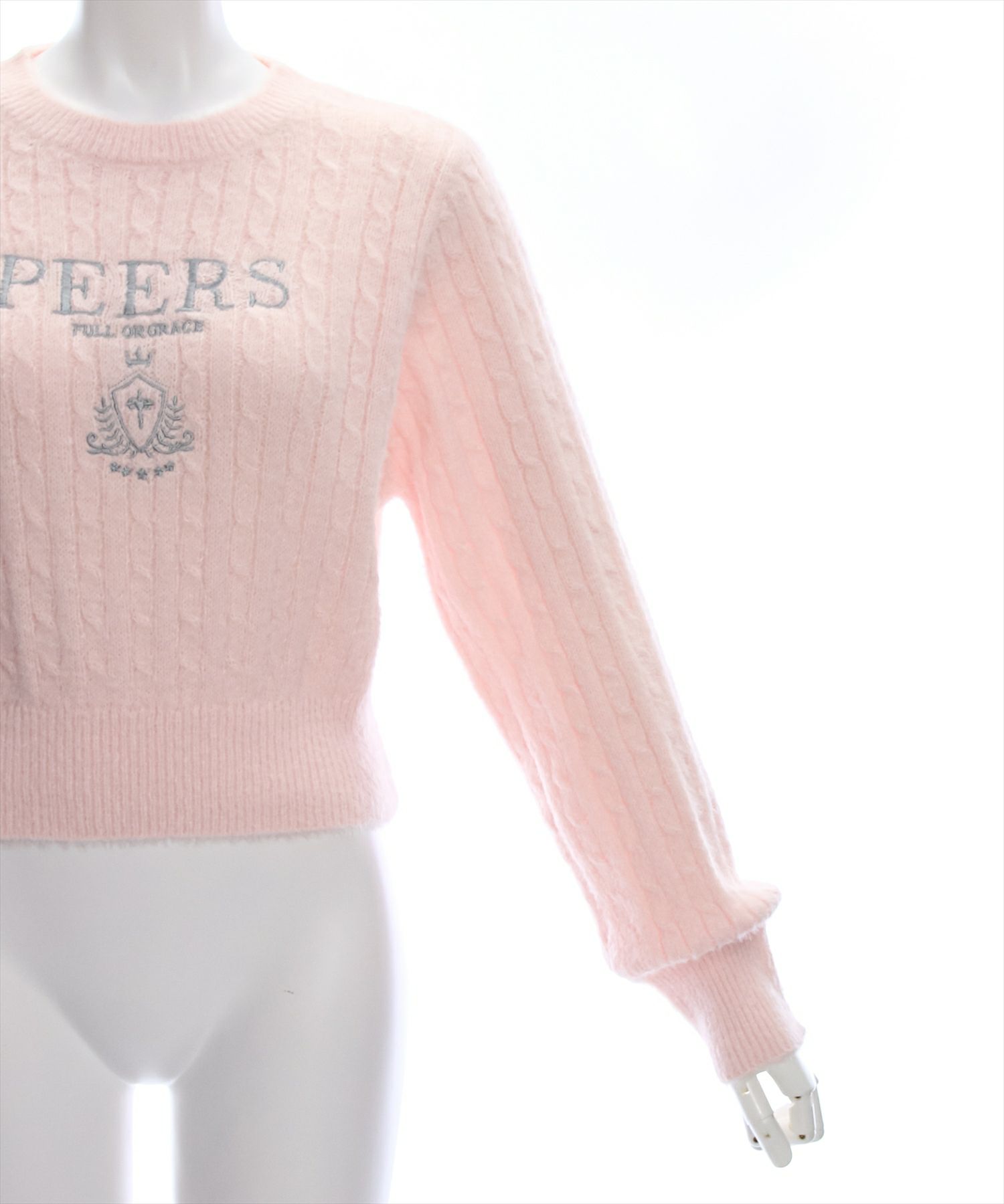 clear フロント刺繍シャギーケーブルニットトップス[CL8297]