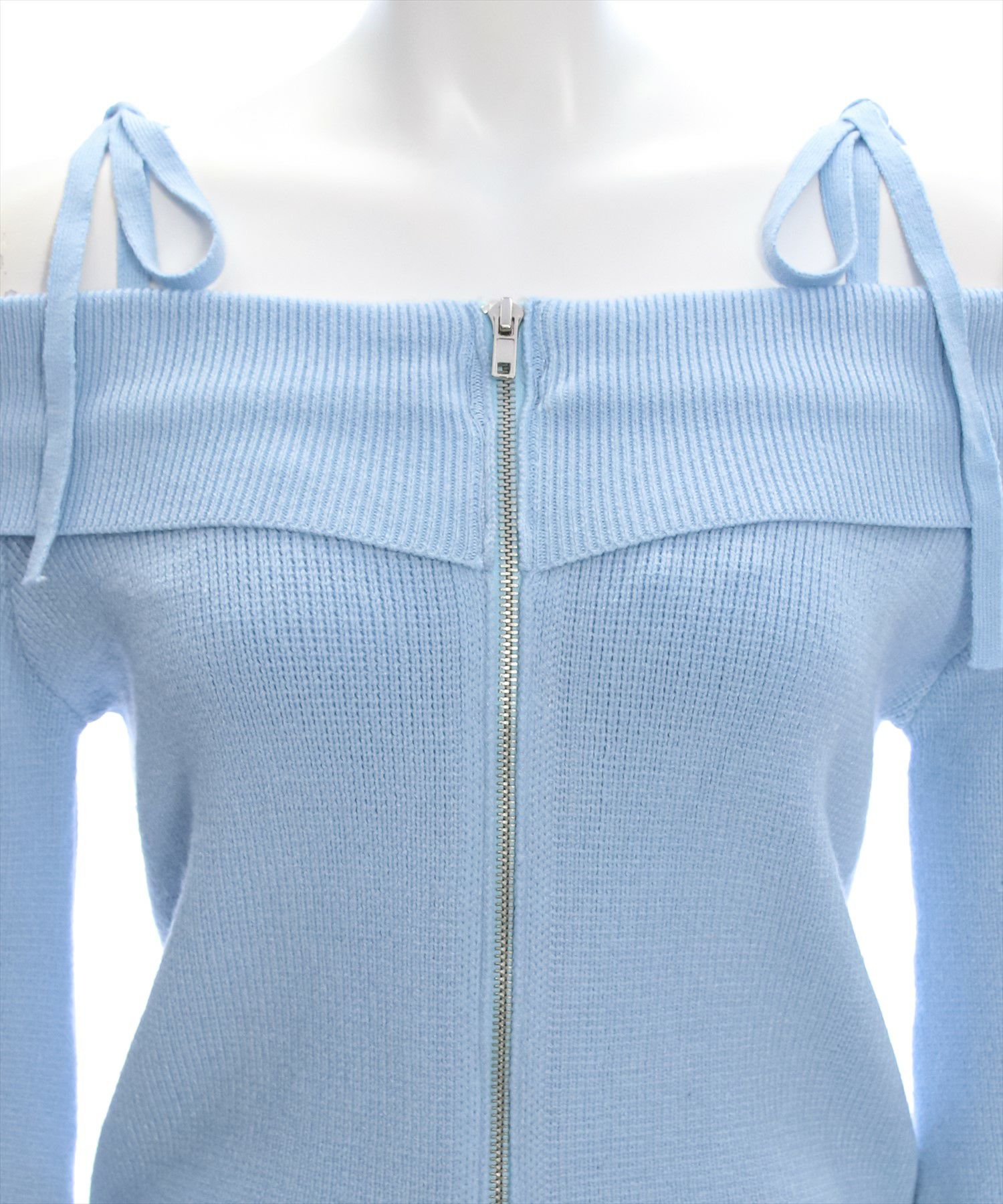 clear ダブルジップオフショルリボン付きニットトップス[CL8647]
