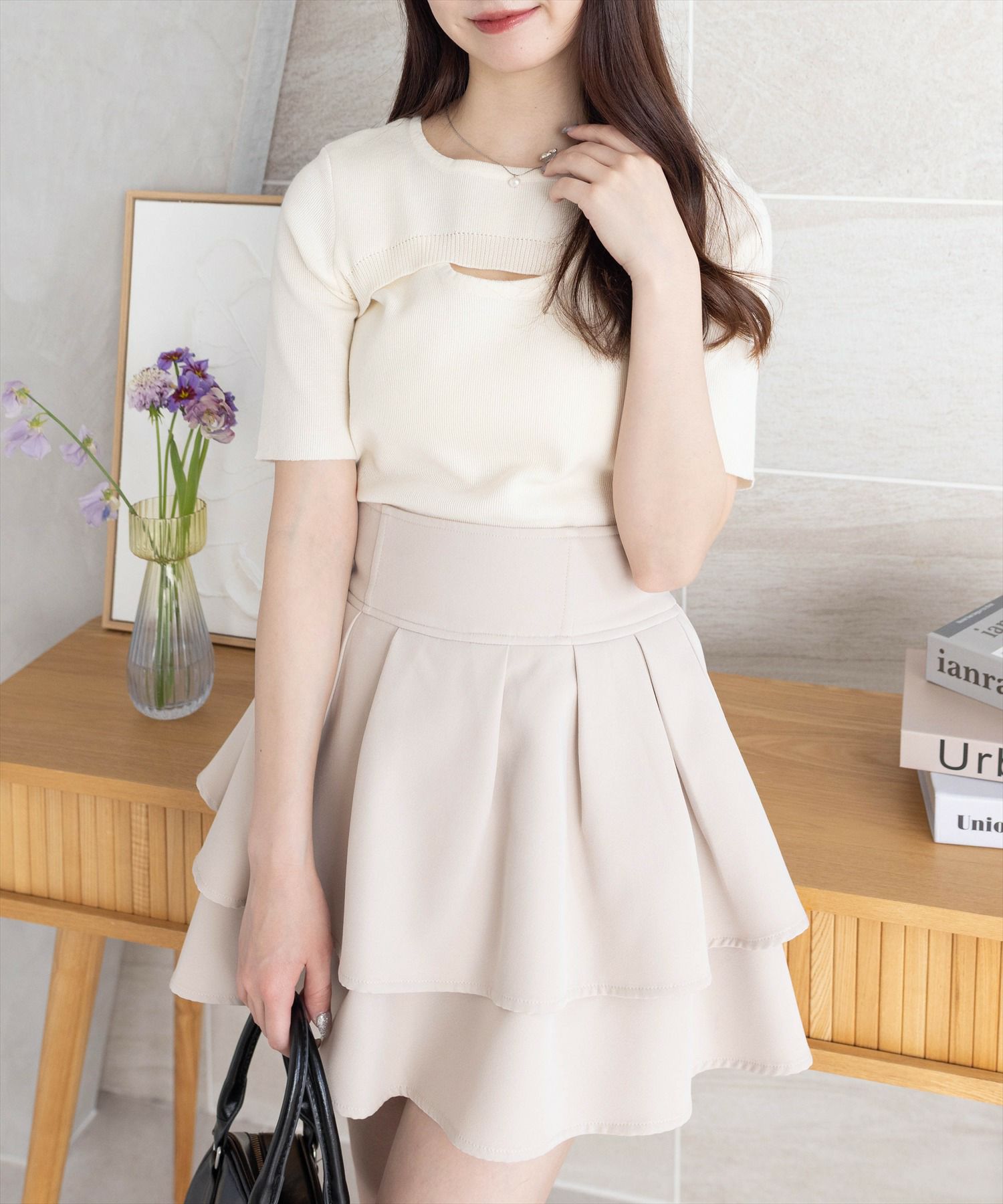 clear レイヤードデザイン半袖ニットトップス[CL9022]