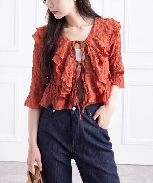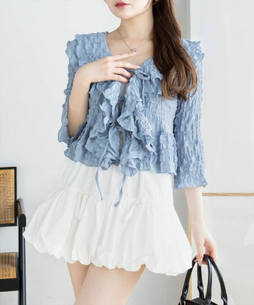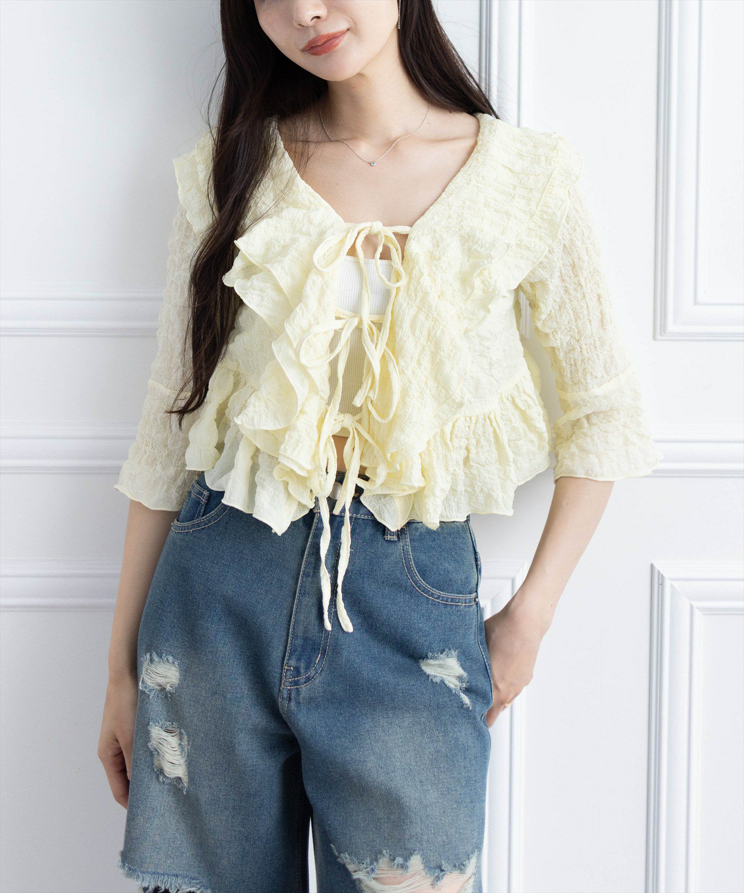 CLEAR BASIC ダブルフリル七分袖ブラウス[CL9232]