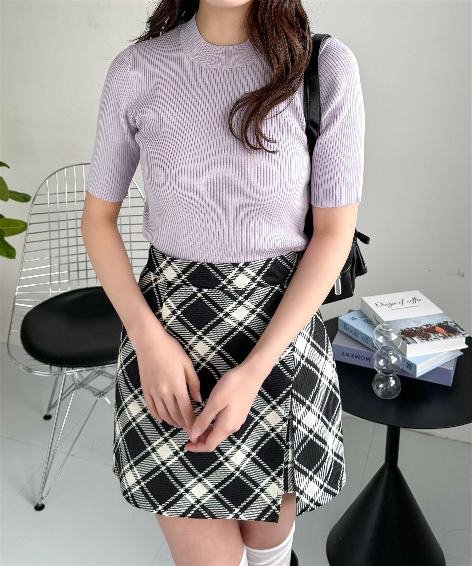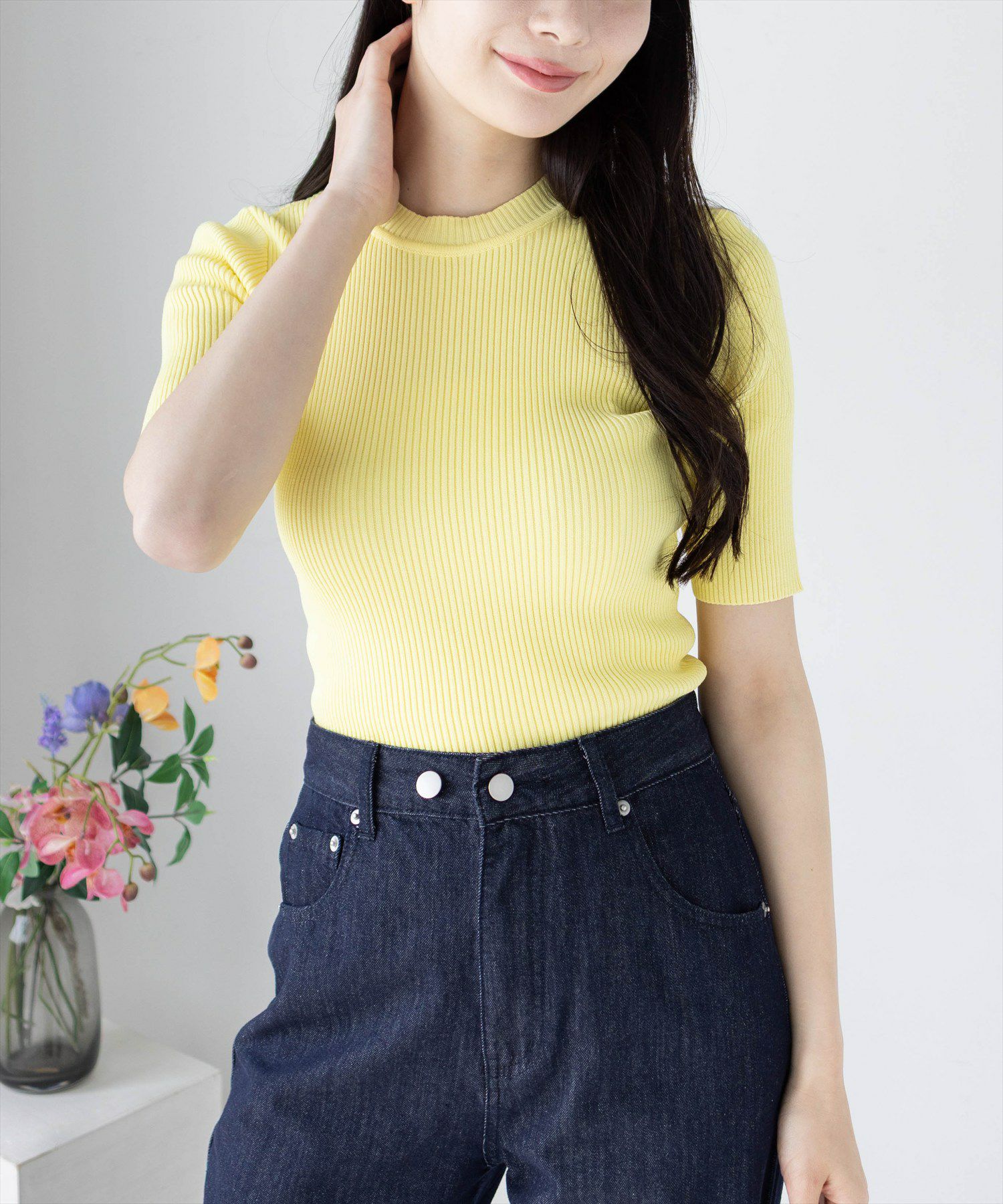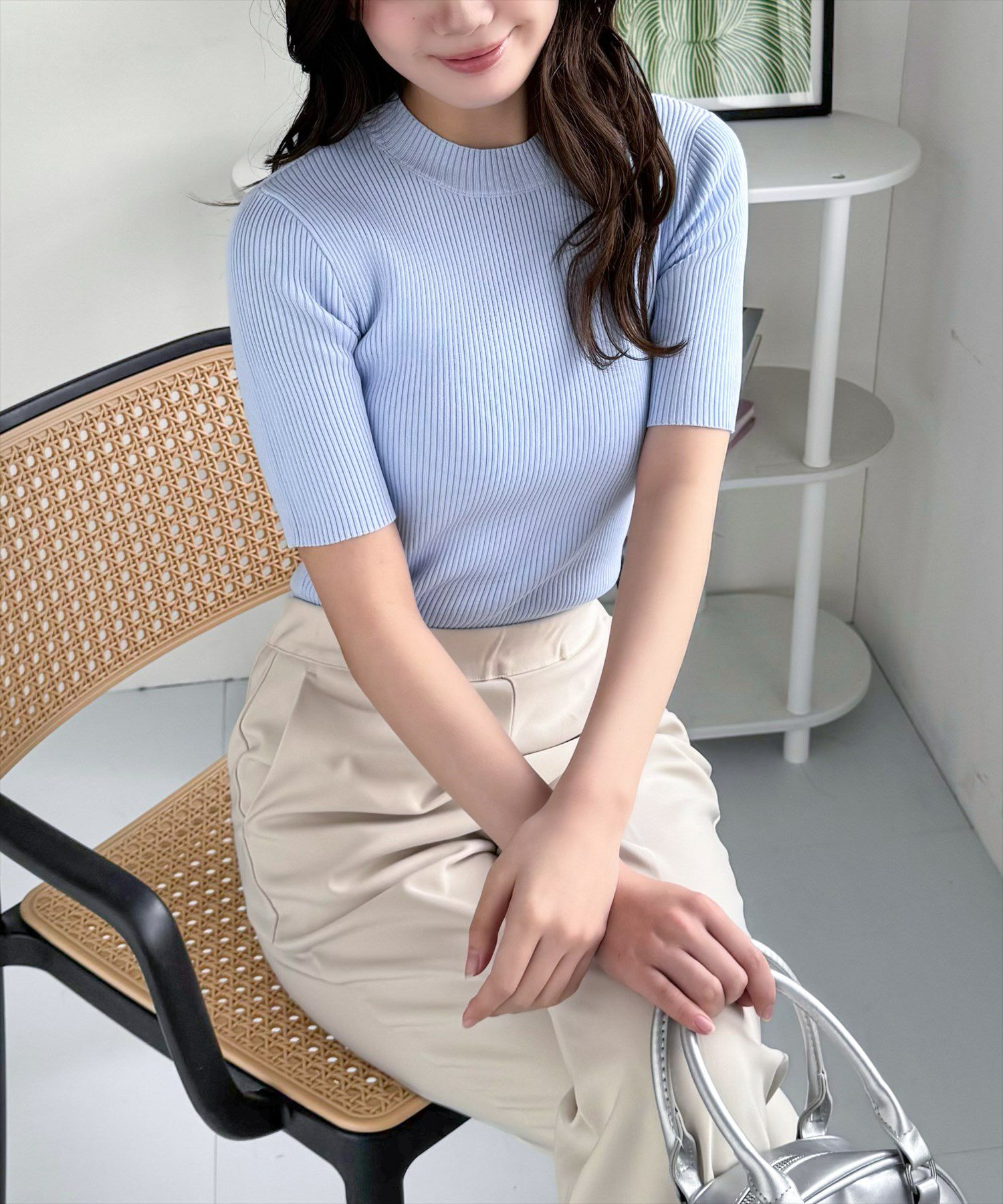 clear 5分袖ハイネックニットトップス[CL8105]