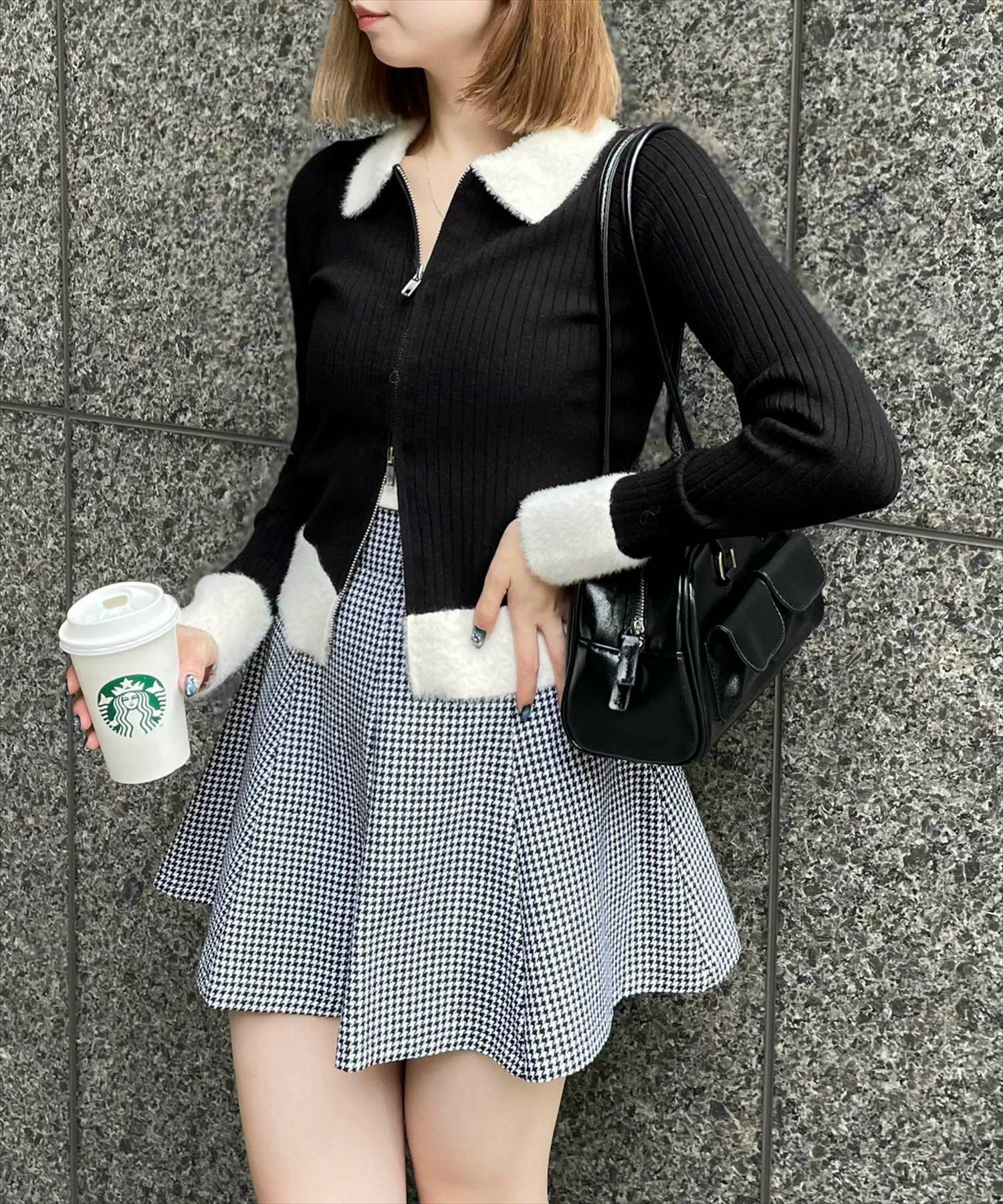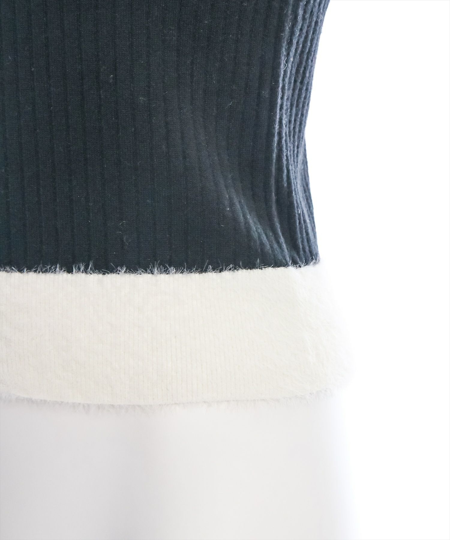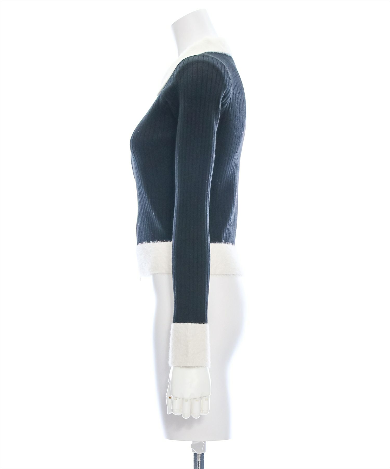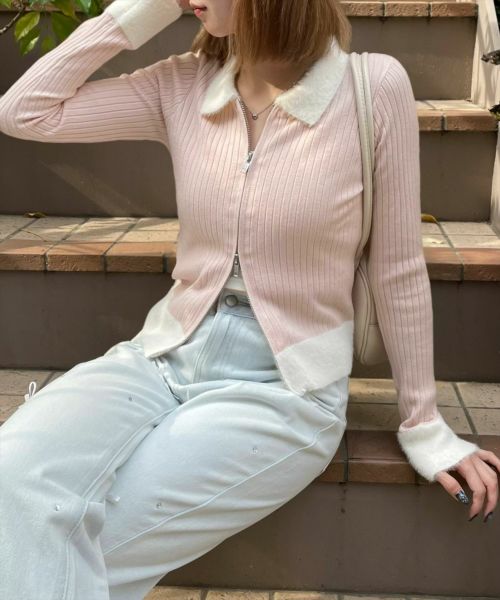 clear 襟袖ショートフェザーダブルジップリブニットトップス[CL8447]