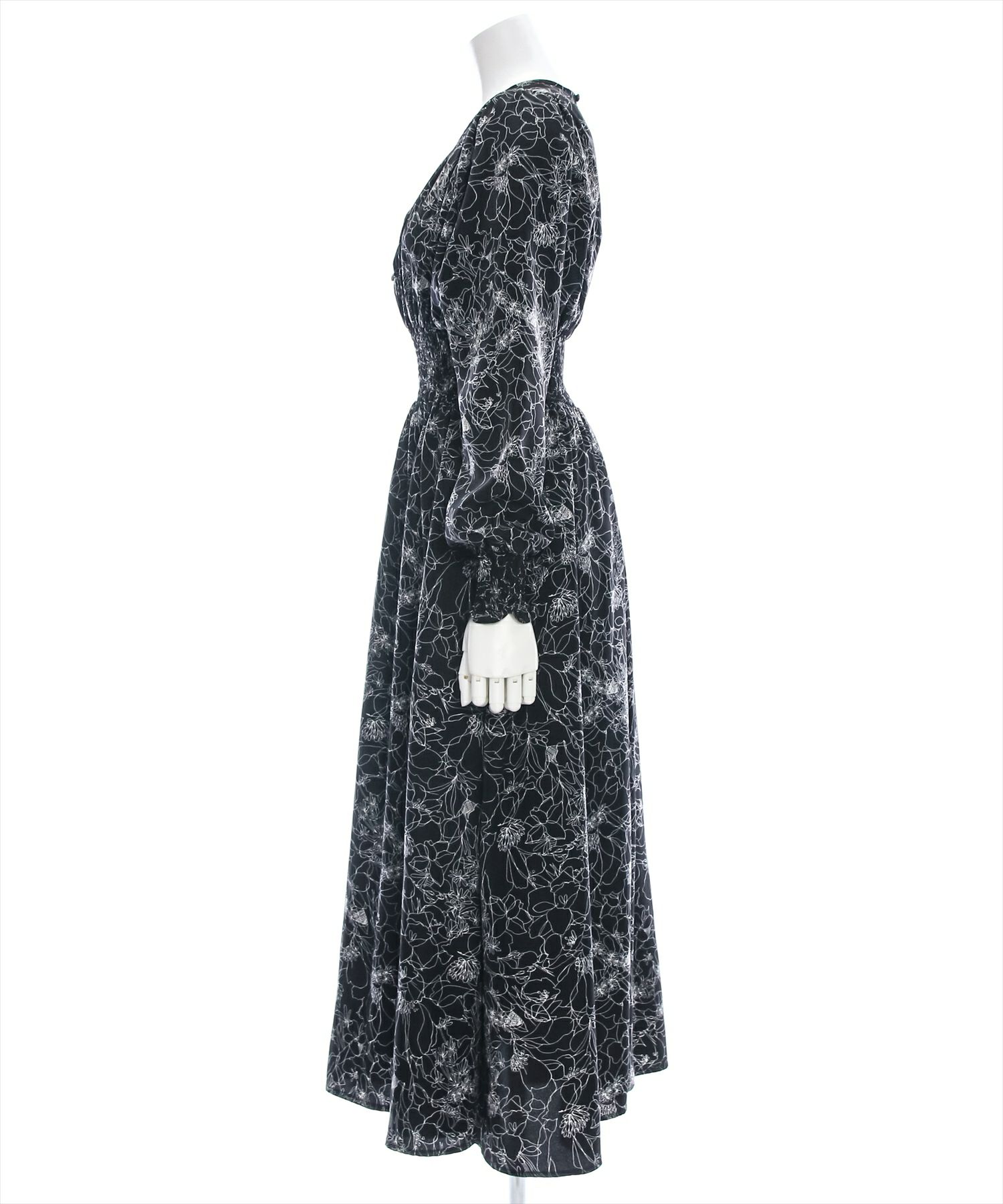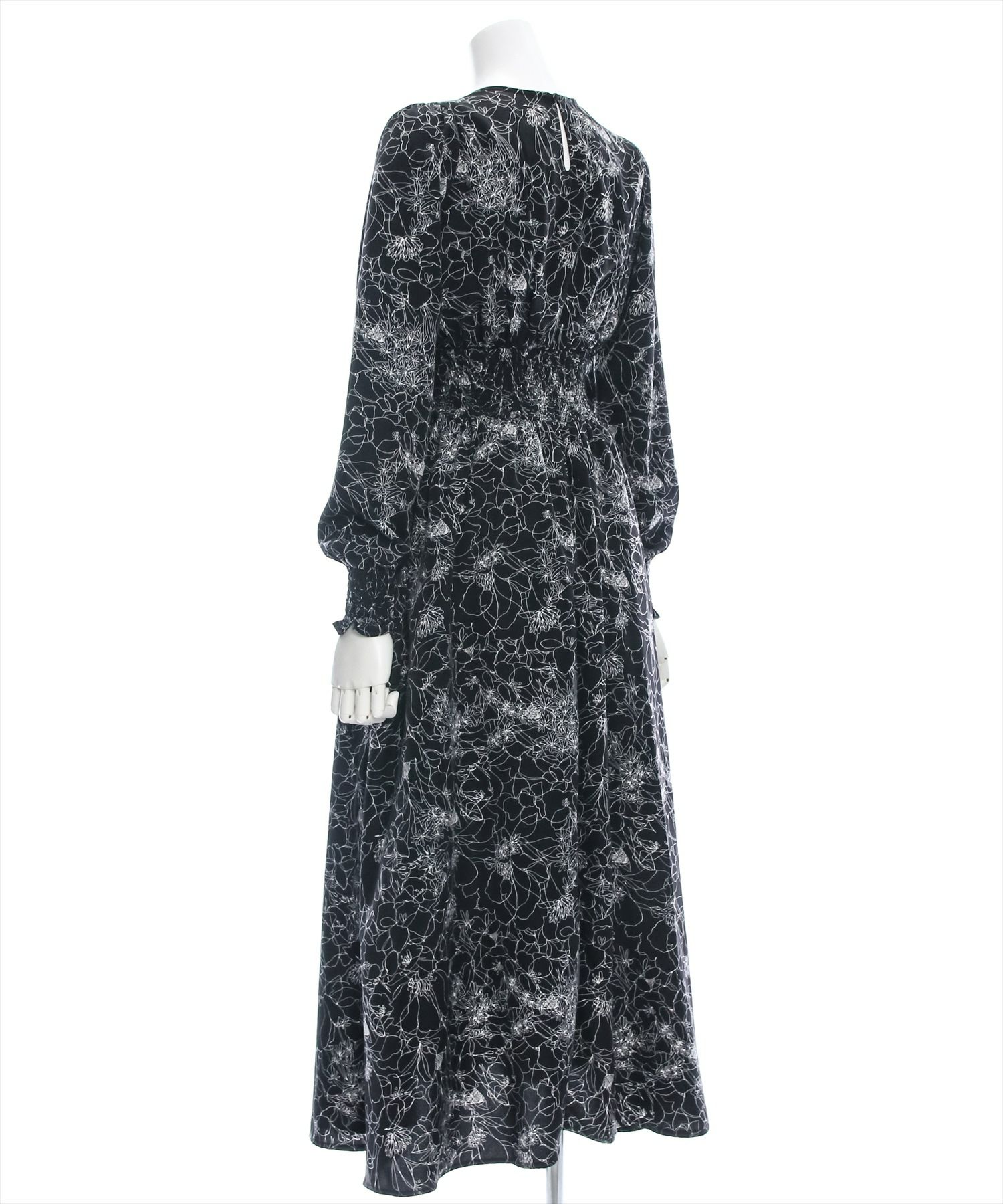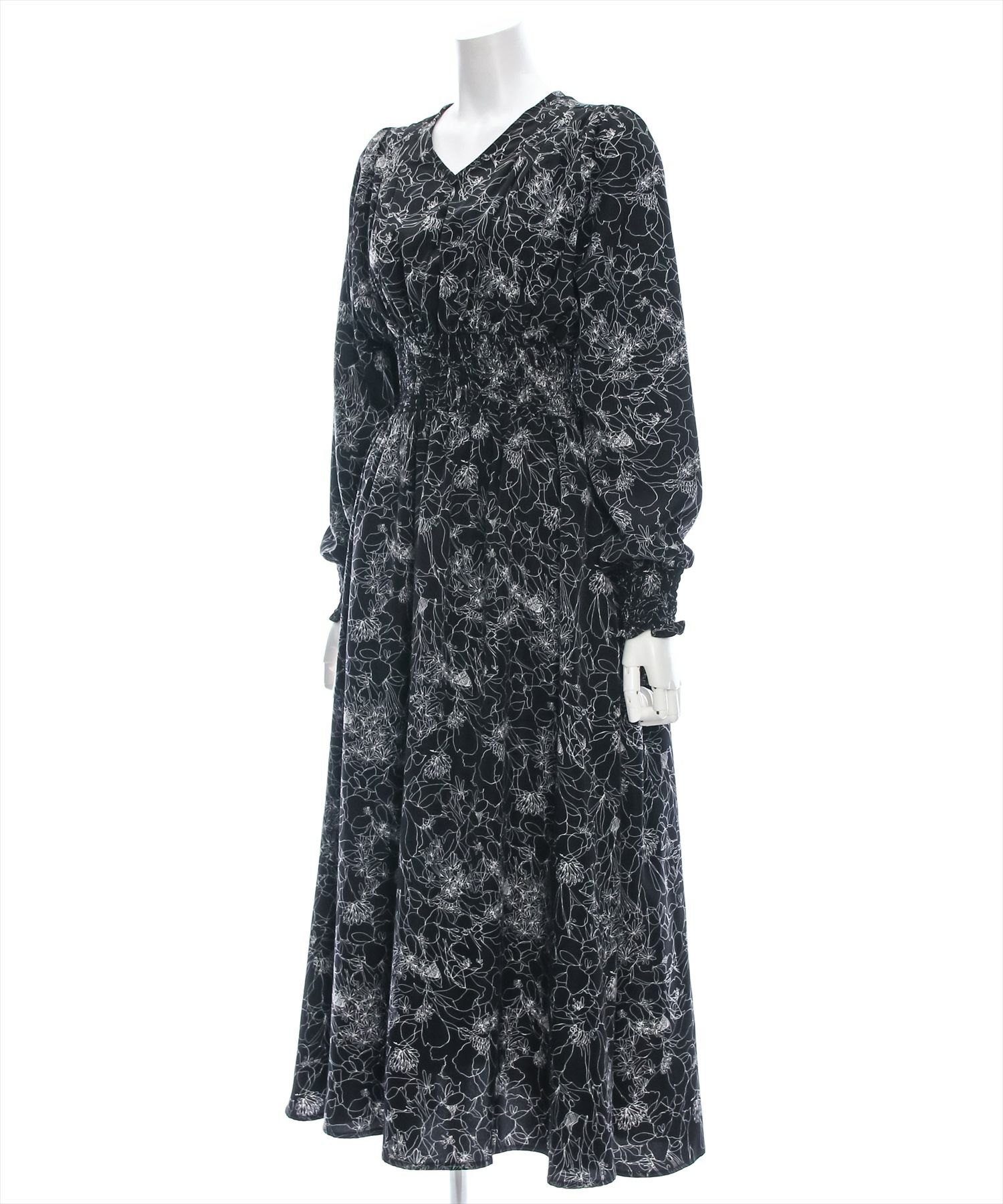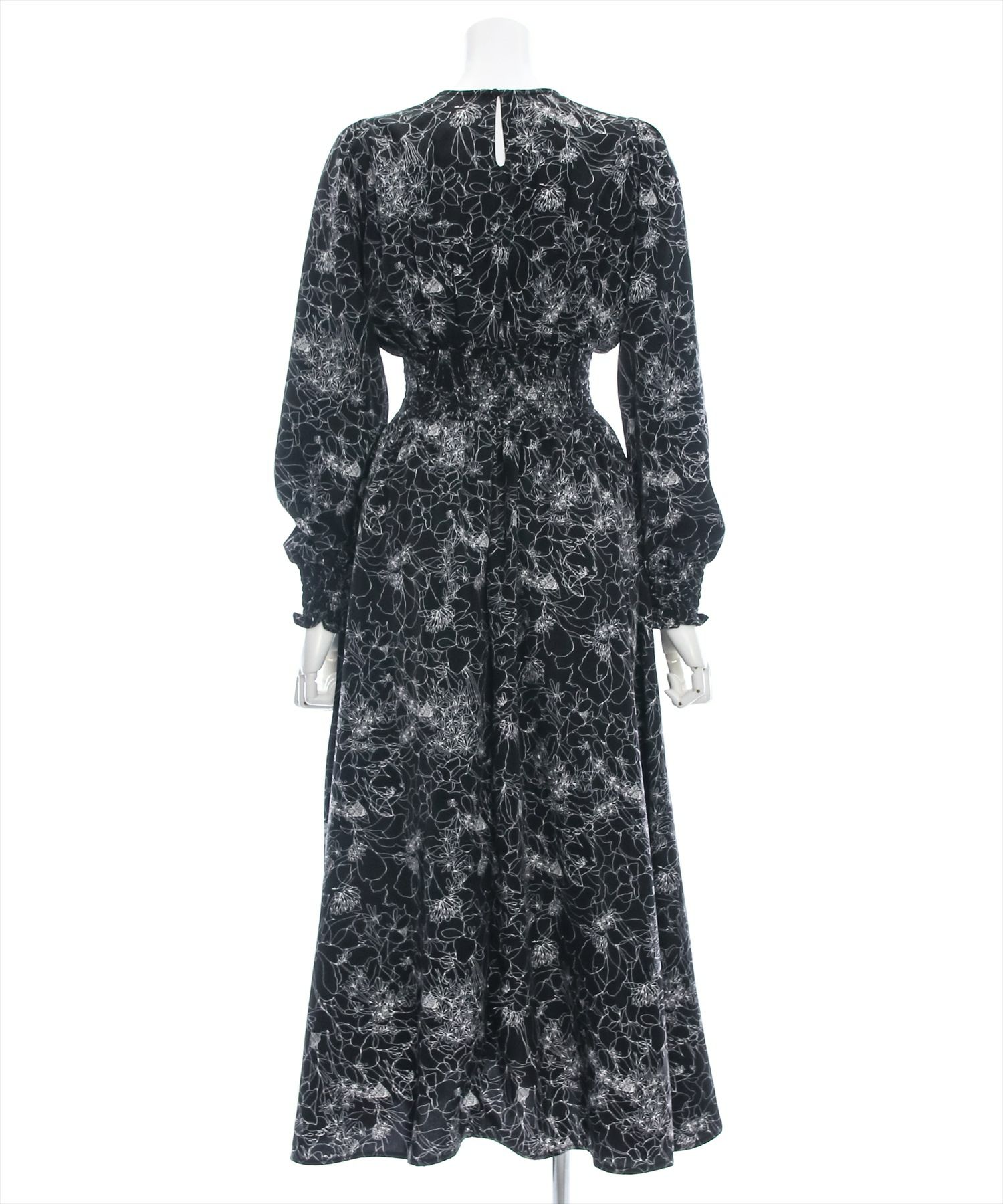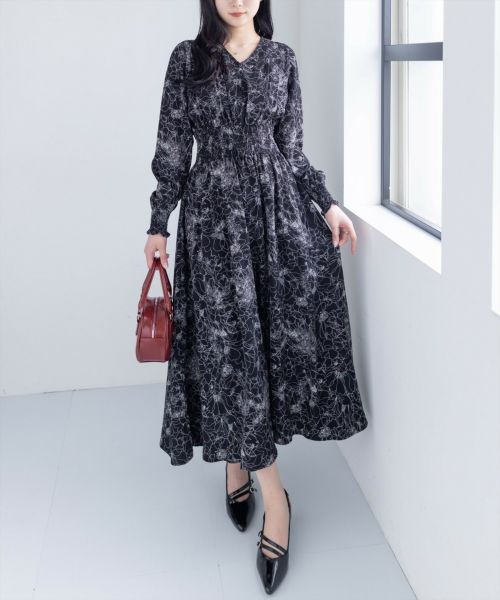 clear ウエストシャーリング花柄長袖ワンピース[CL8814]