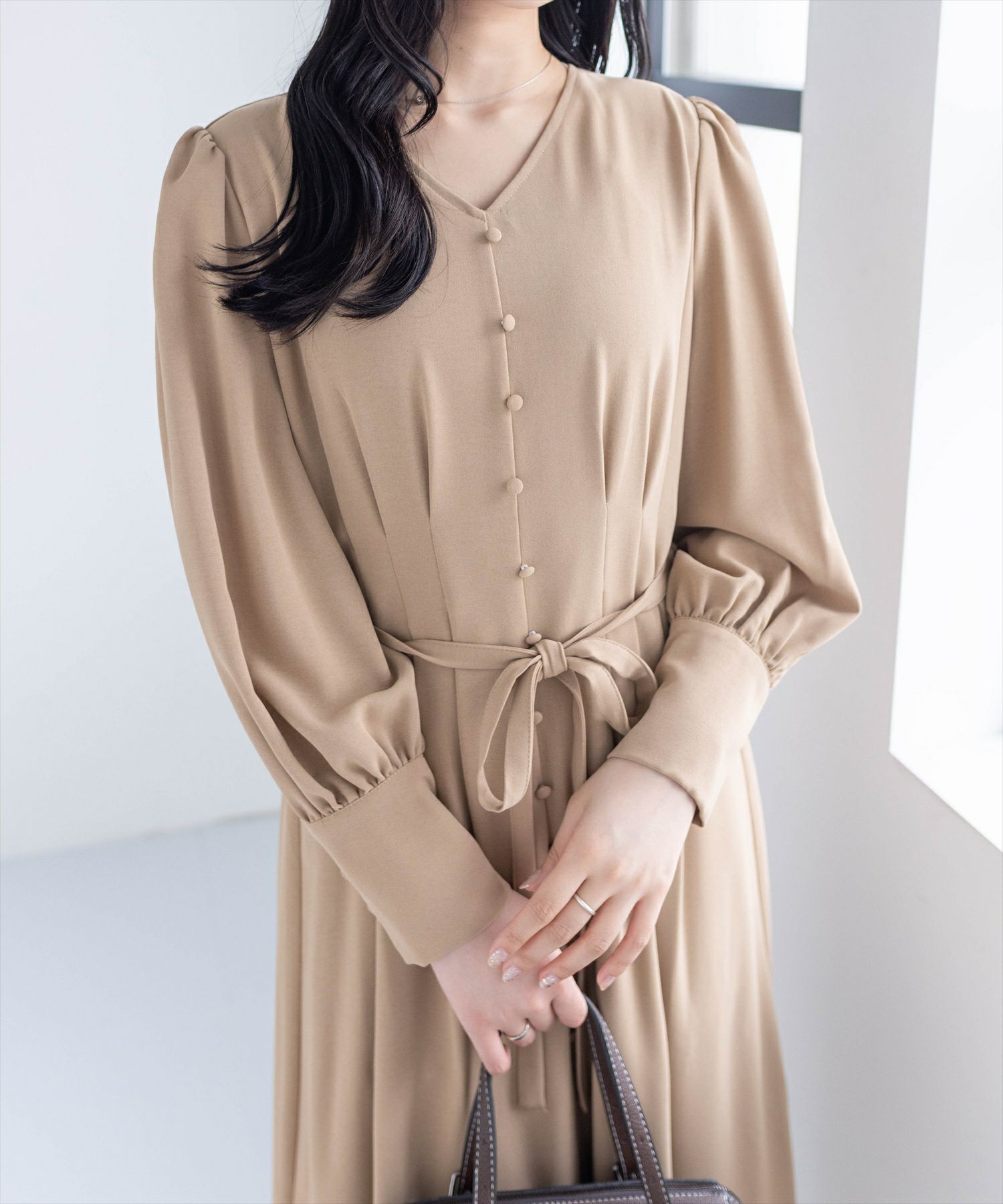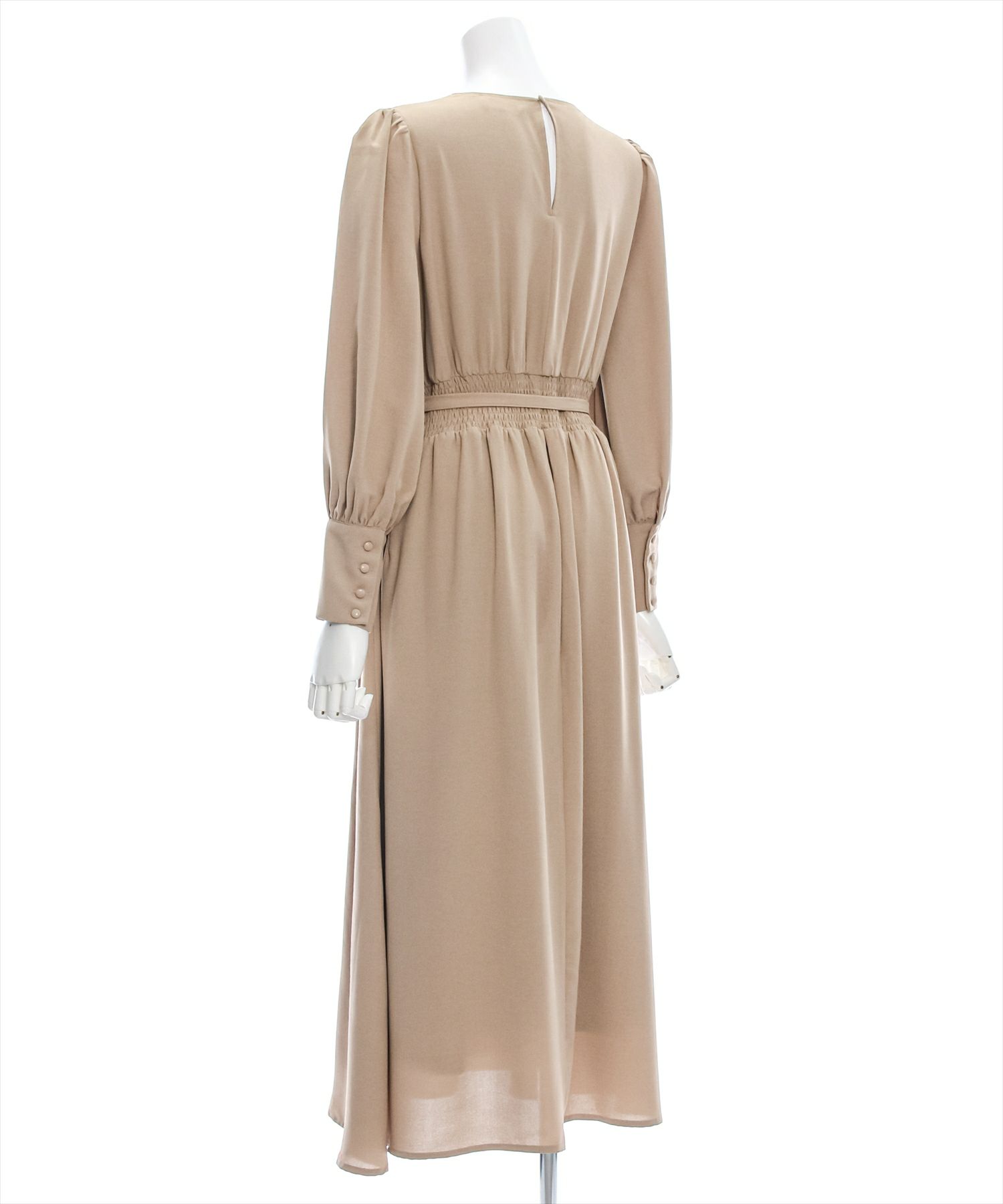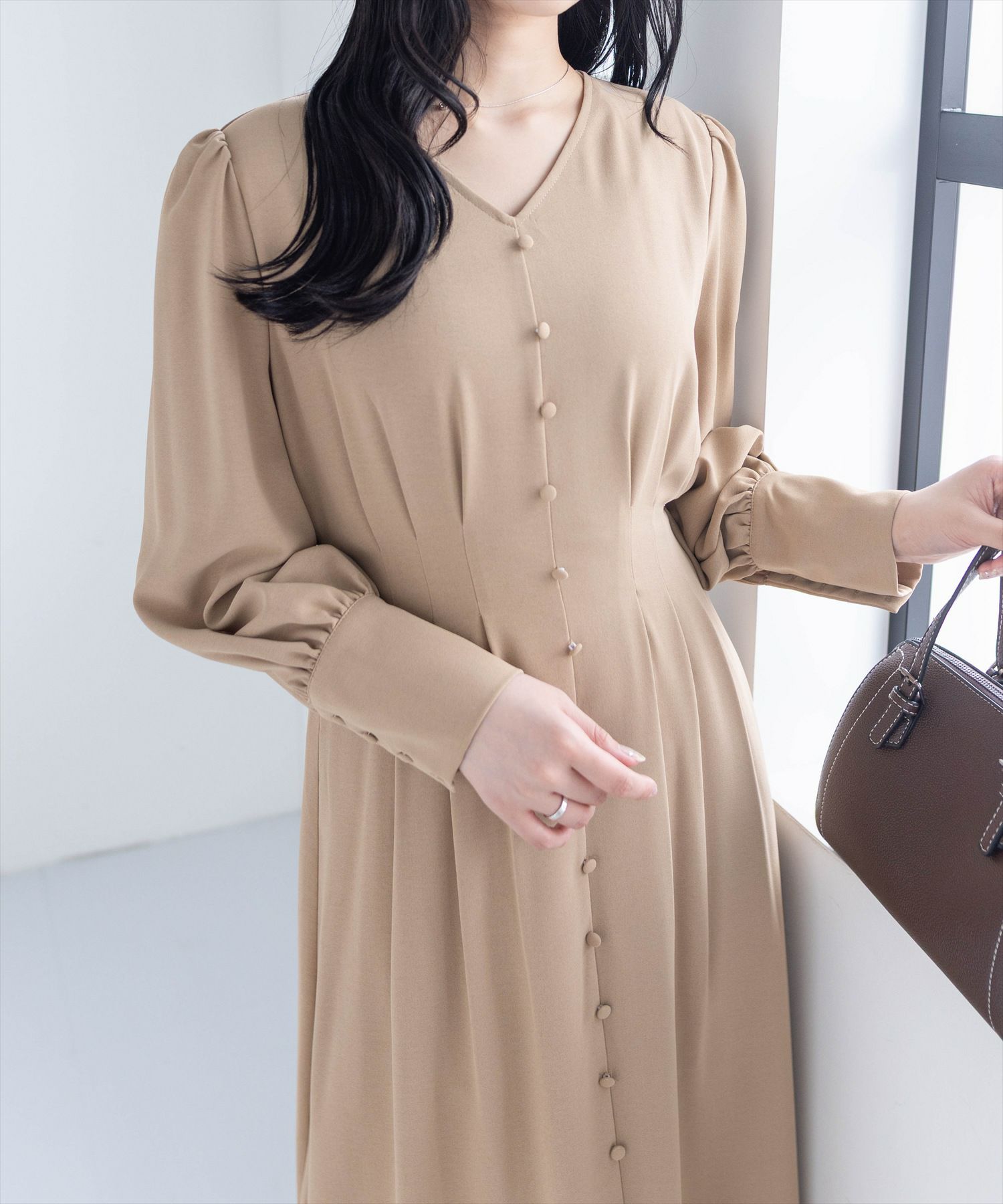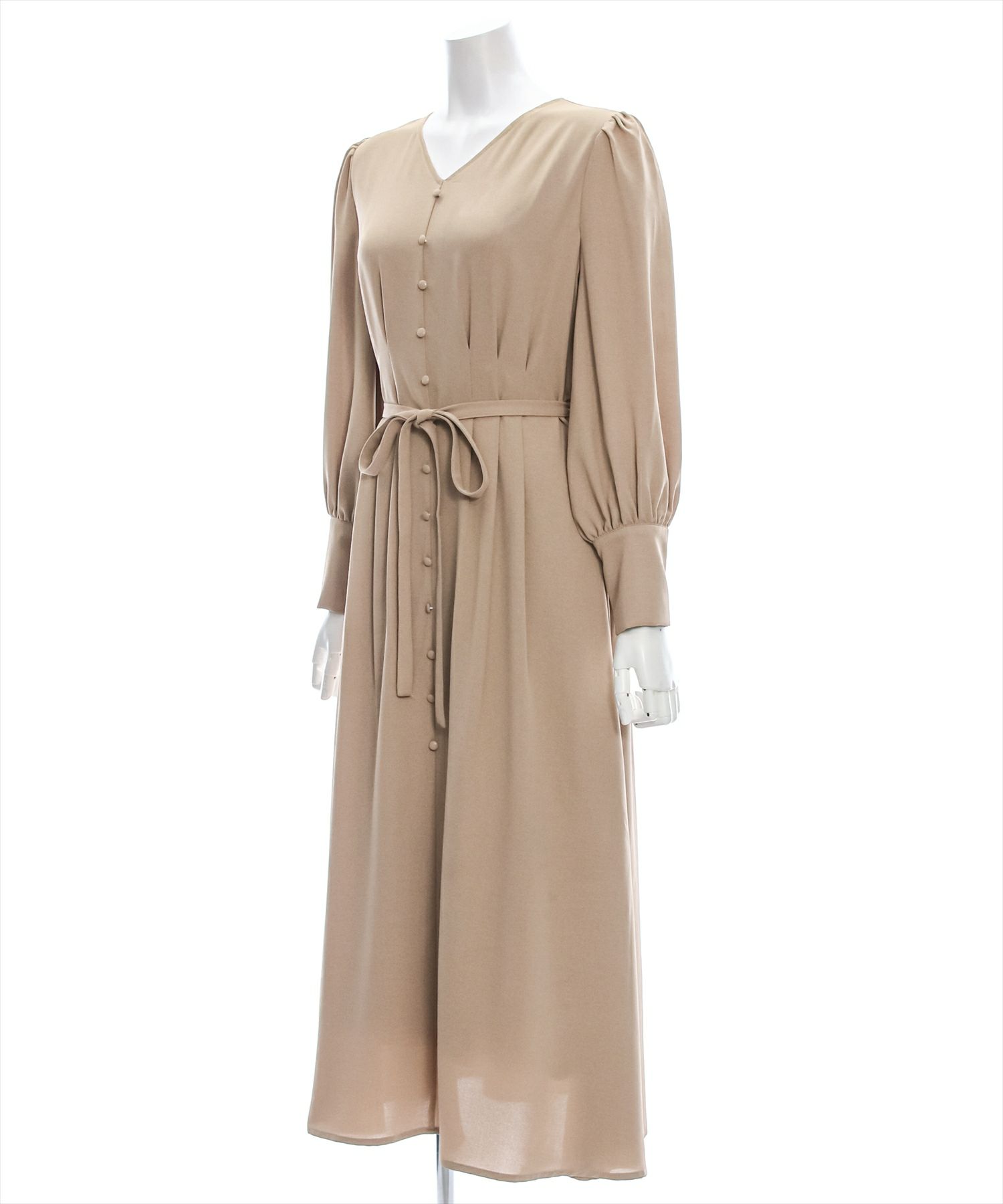 clear クルミボタンVネック長袖ロングワンピース[CL8807]