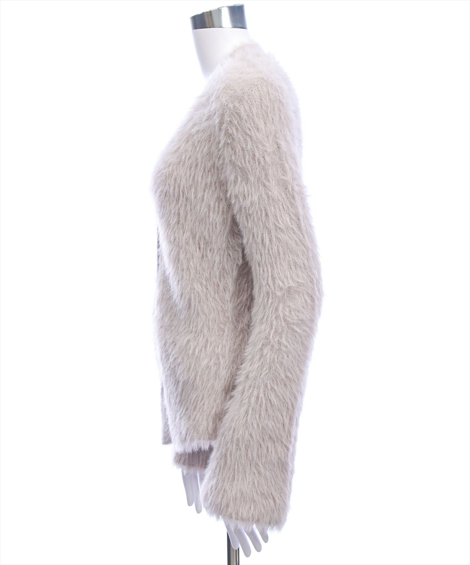 ふんわりとしたフェザー素材が上品な存在感を放つ、Vネックロングカーディガンです。すっきりと開いたVネックラインがデコルテをきれいに見せ、シンプルながらも女性らしい印象に。ロング丈のシルエットが自然に縦ラインを強調し、スタイルアップも叶います。