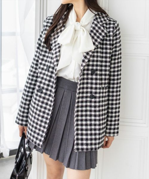 きちんと感と抜け感を両立する!ブロックチェックフェイクウールダブルジャケット