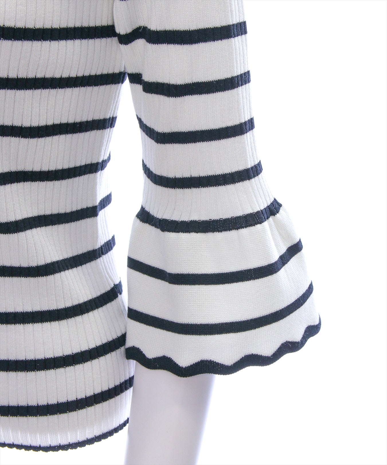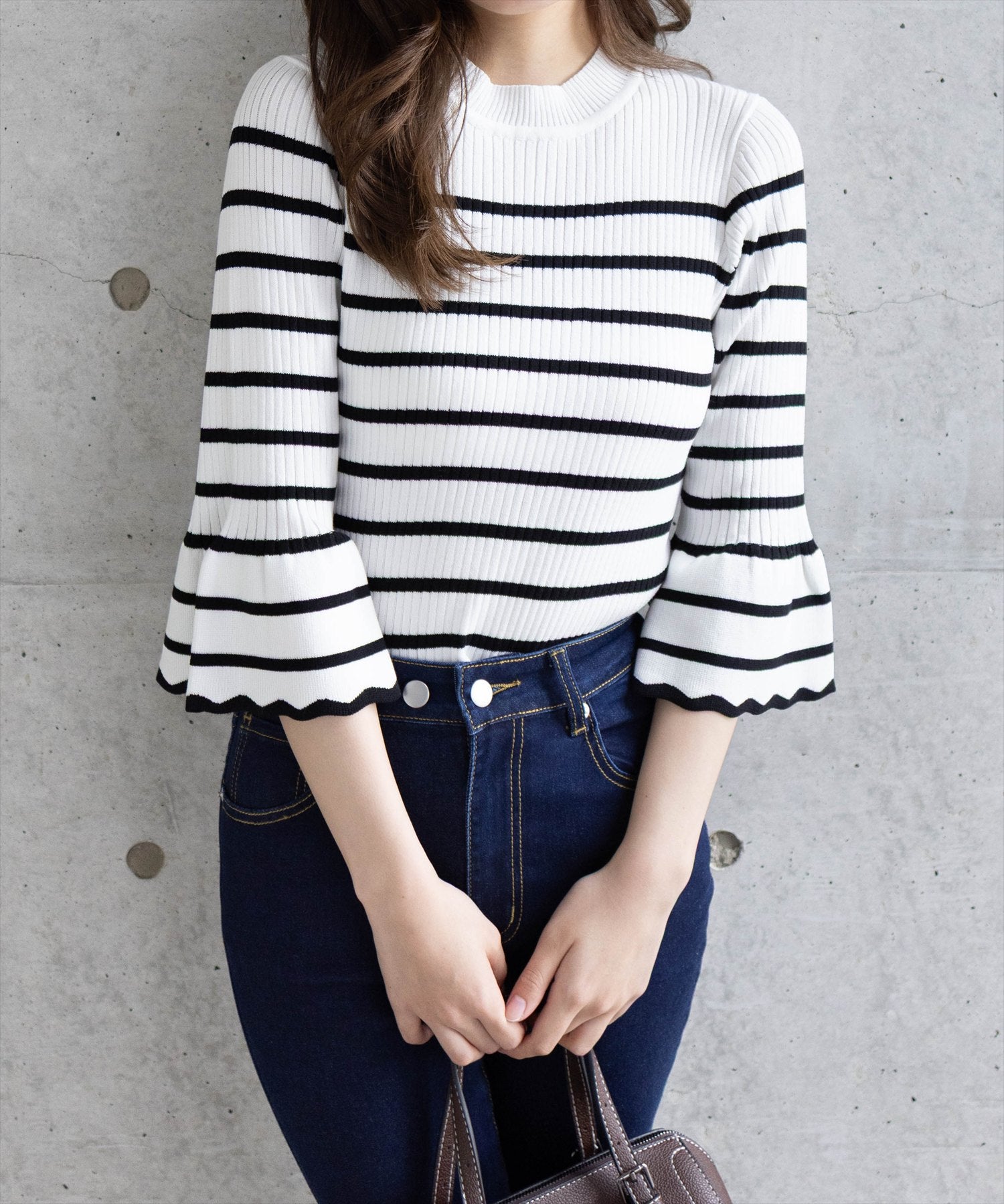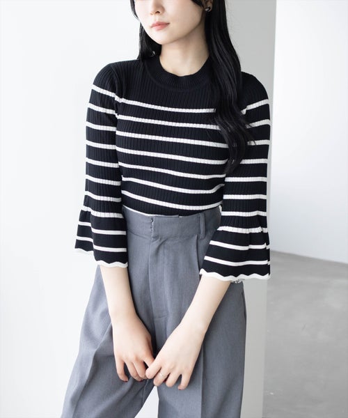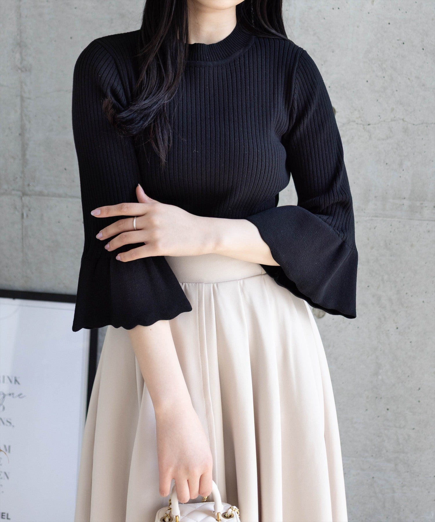 袖のフレア感がかわいい!五分袖スカラップニットトップス
