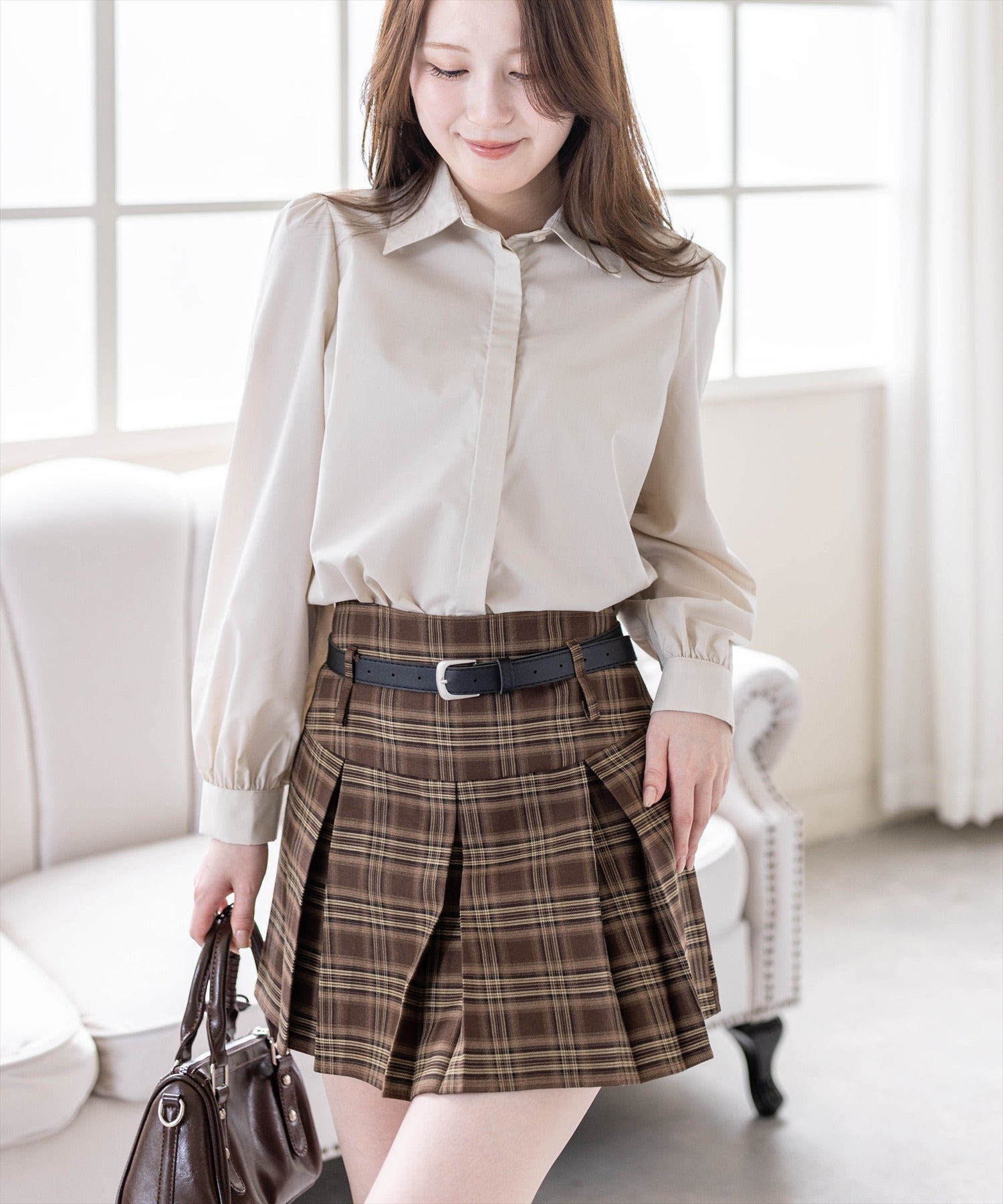 プリーツミニスカートにレースアップブーツを合わせて王道ガーリーにも。ニットやスウェットとのレイヤードもこなれ感がアップして可愛いです♪