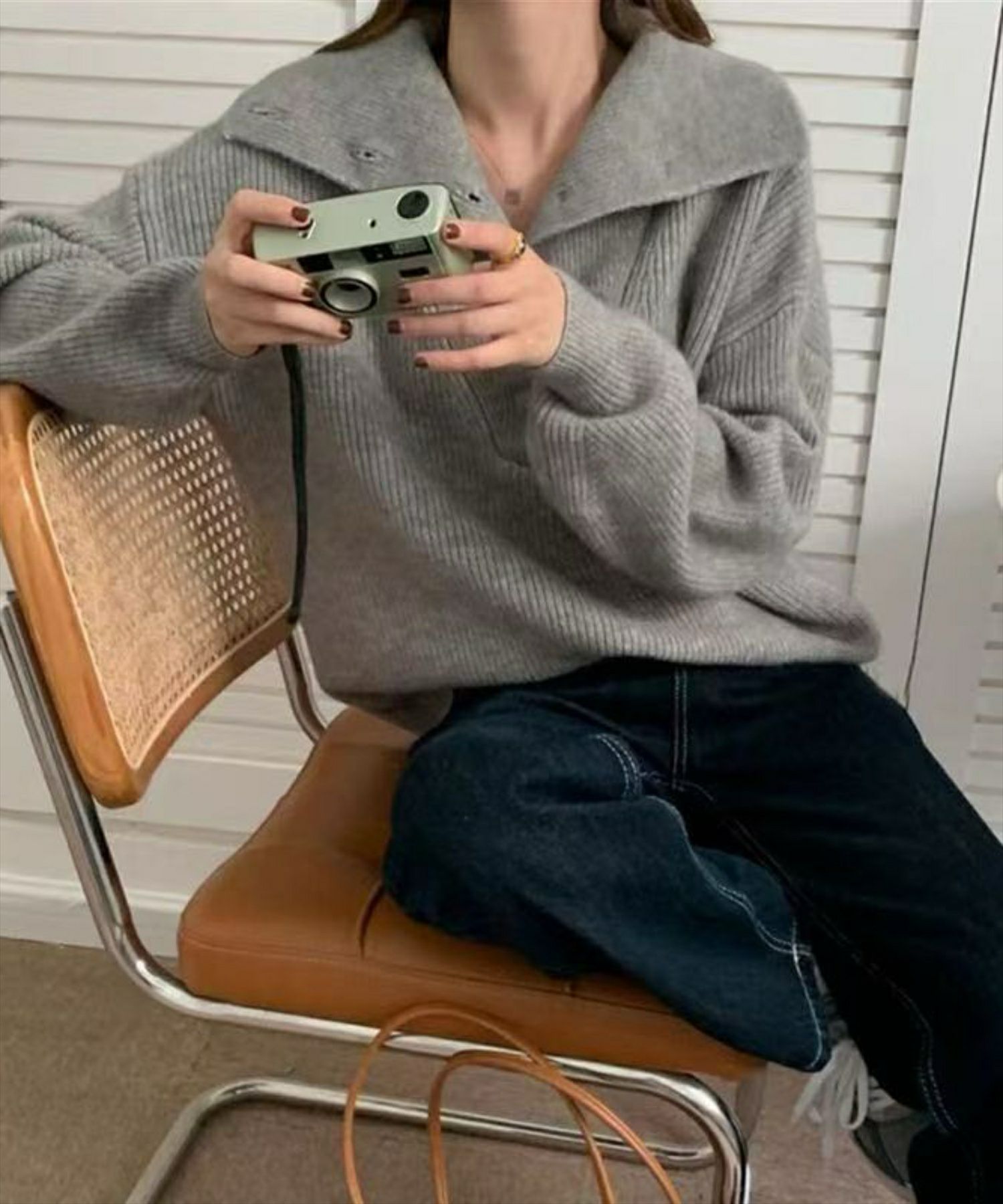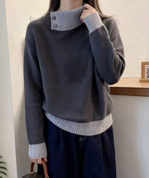 STAY MOTION≪WEB限定/AW新作≫襟ボタン配色長袖ニット[ST1066]