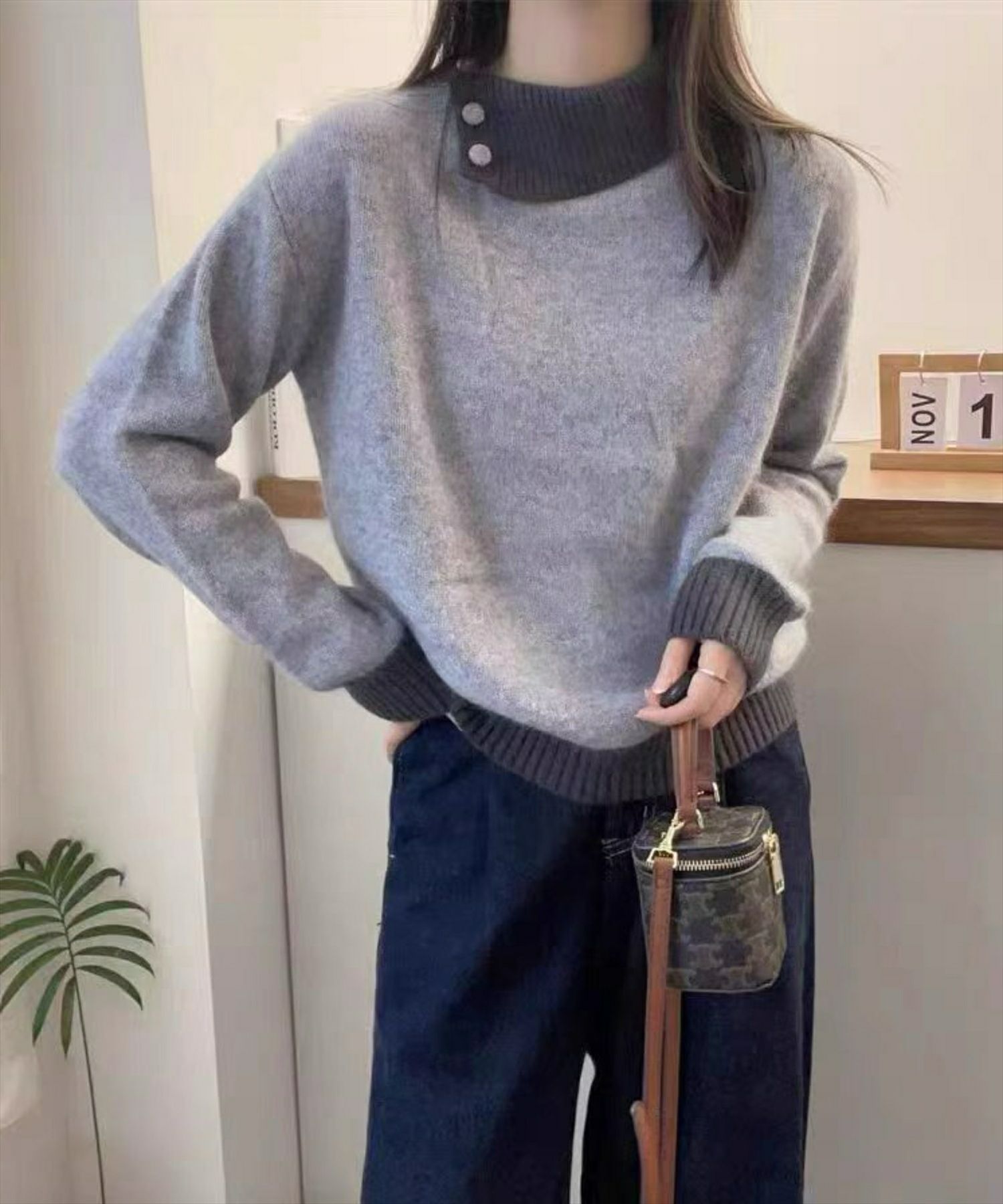 STAY MOTION≪WEB限定/AW新作≫丸襟配色ニットトップス[ST1071]