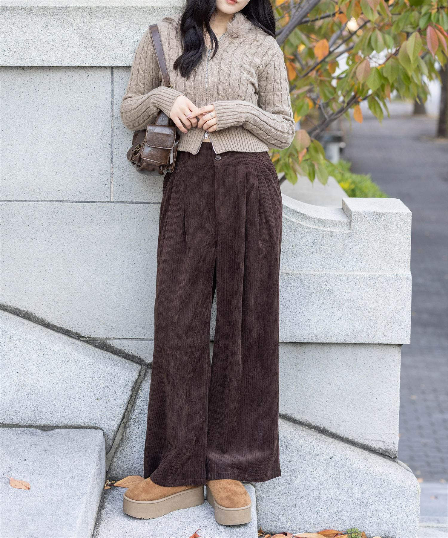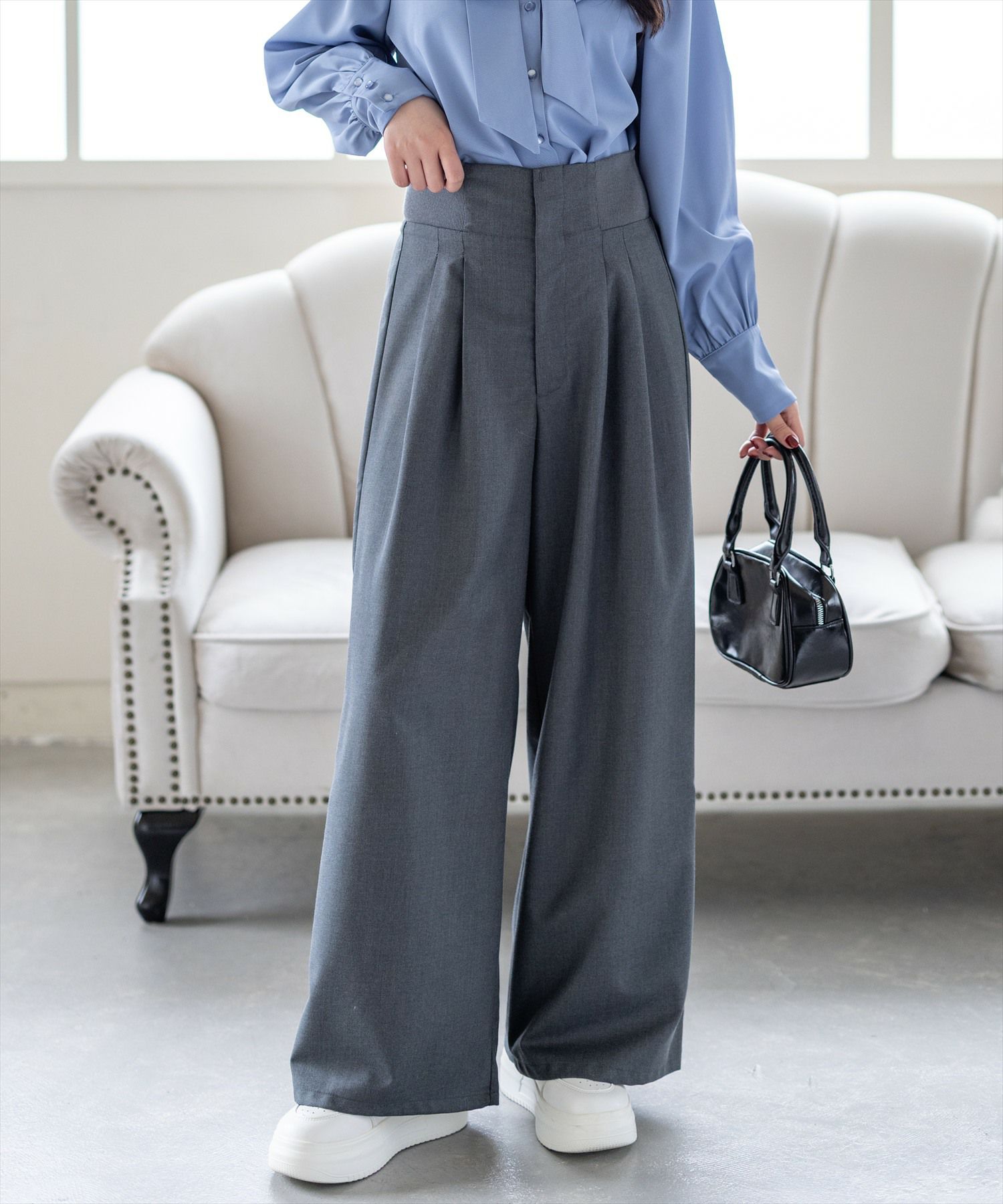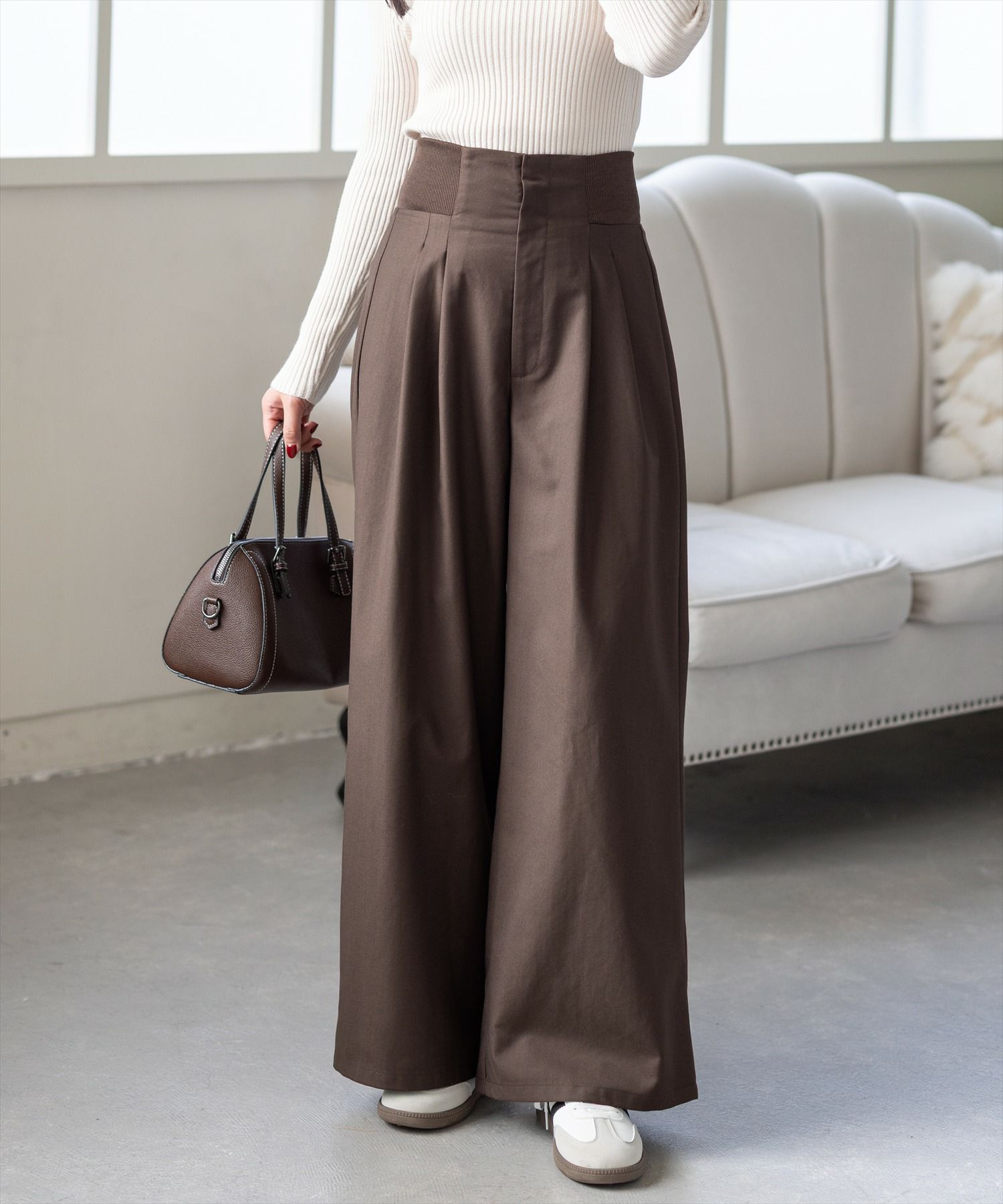 CLEAR BASIC≪AW新作≫ウエストリブワイドパンツ[CL9517]