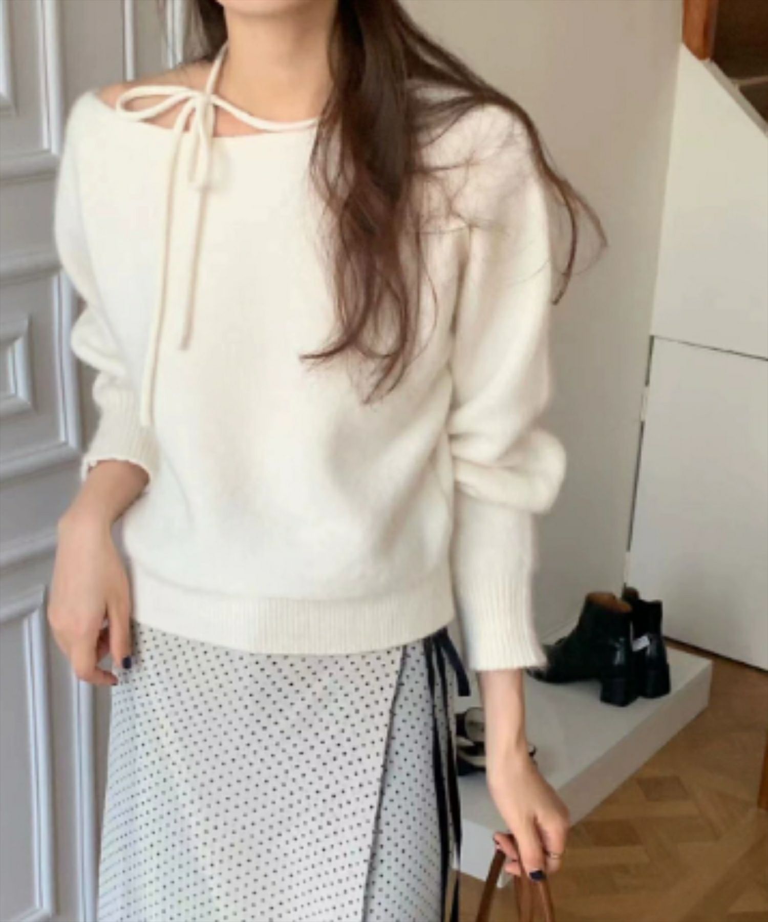 clear≪AW新作≫肩チュールリボンニットトップス[CL9470]