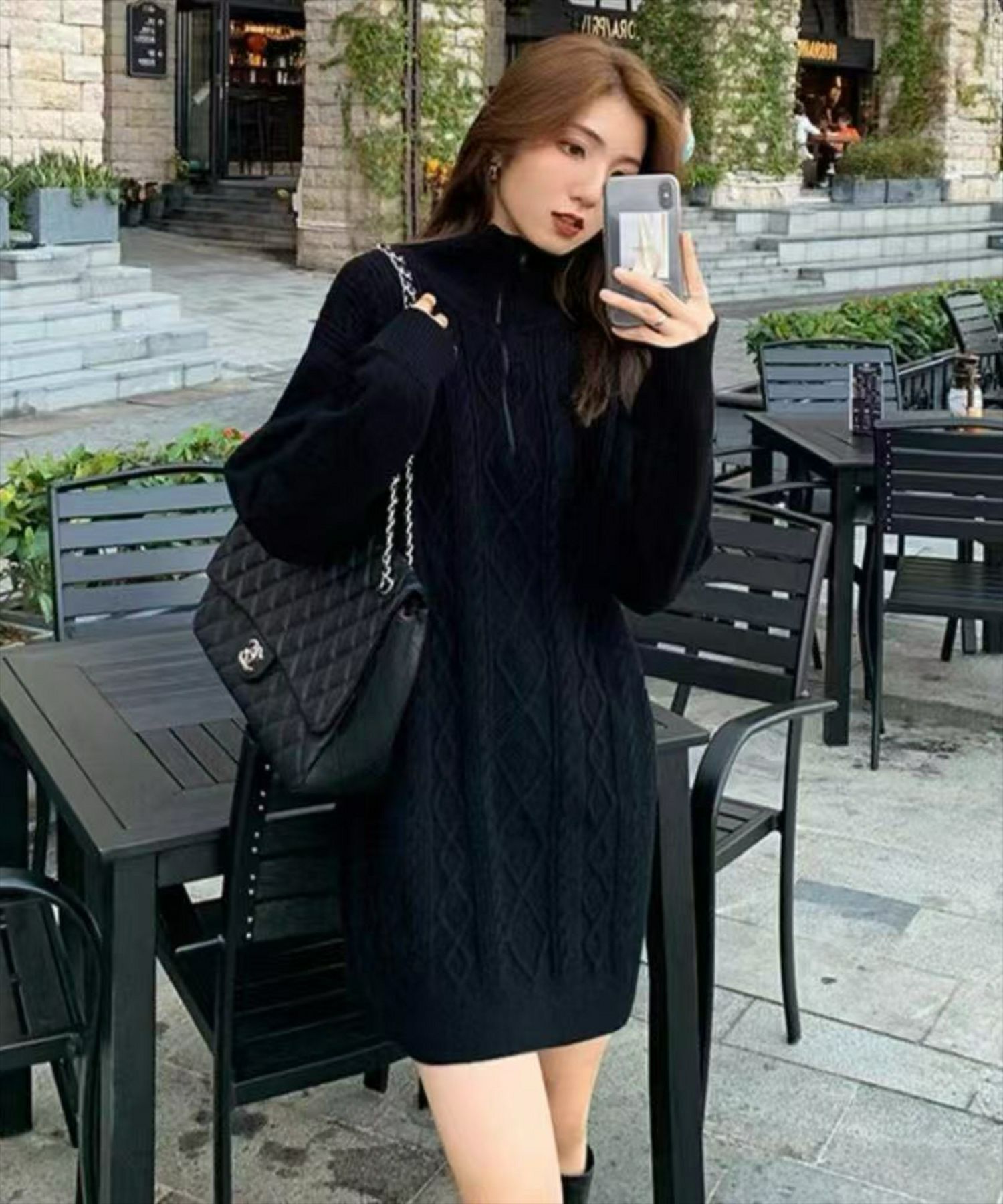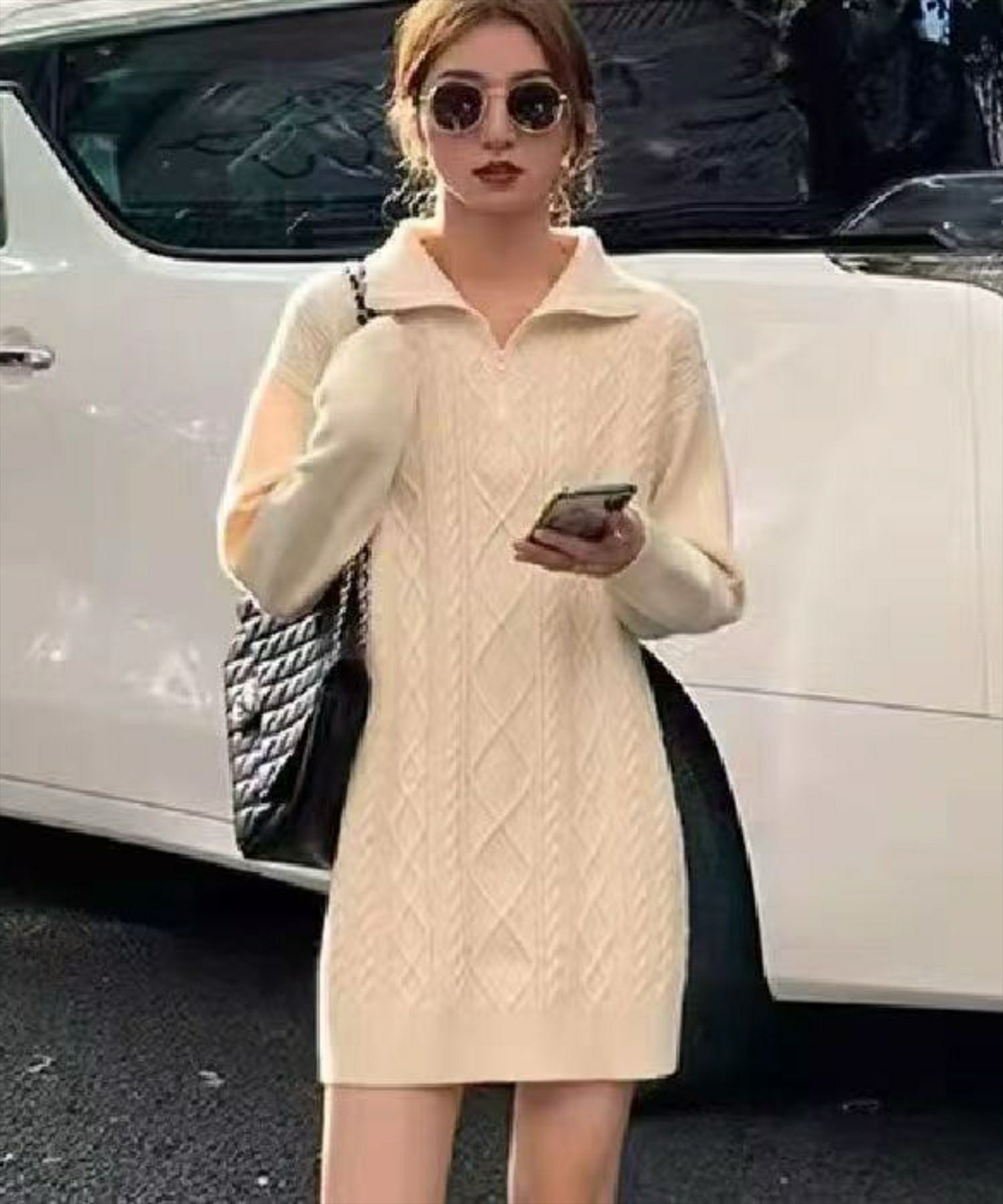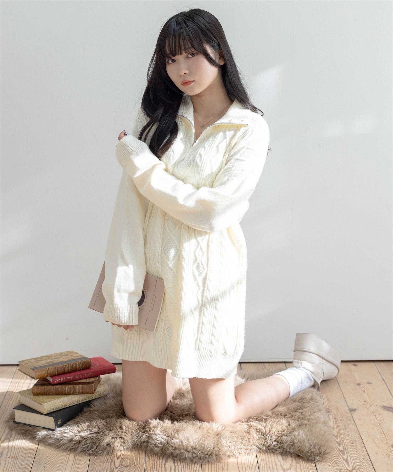 STAY MOTION≪WEB限定/AW新作≫ケーブル編みジップニットワンピース[ST1067]