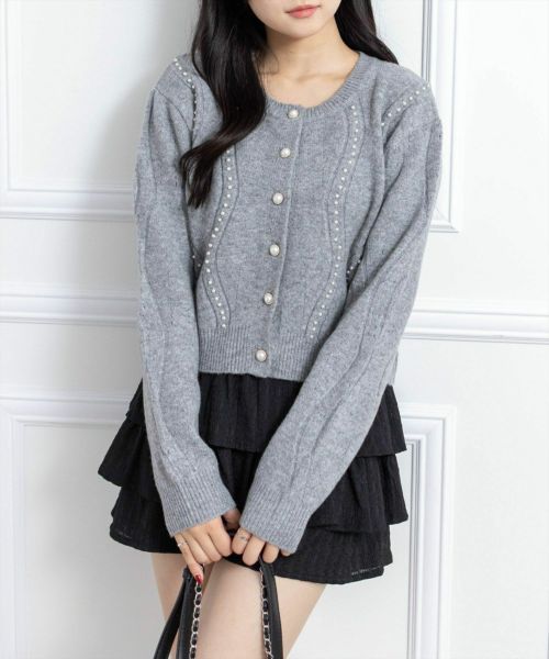 CLEAR BASIC≪AW新作≫パールデザイン長袖ニットカーディガン[CL9201]