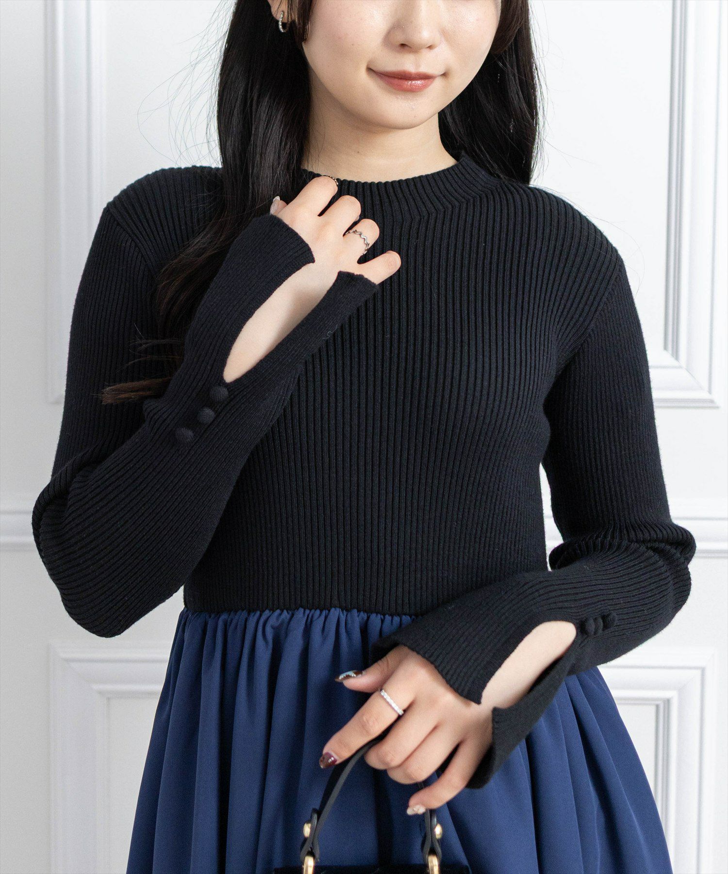 clear≪AW新作≫バイカラーゴールドボタンニットワンピース[CL9482]