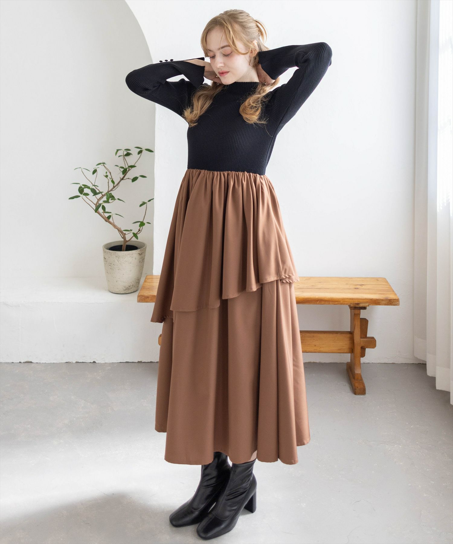 CLEAR BASIC≪AW新作≫ランダムスカートドッキングニットワンピース[CL9528]
