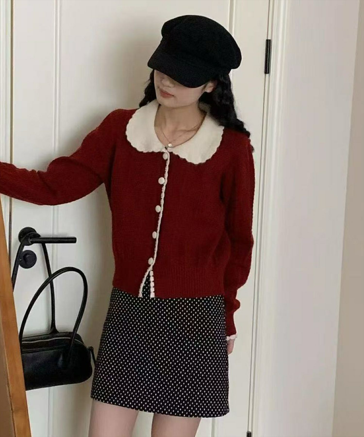 STAY MOTION≪WEB限定/AW新作≫ドット柄Vネックカーディガン[ST1065]