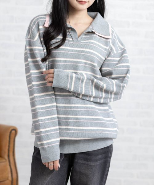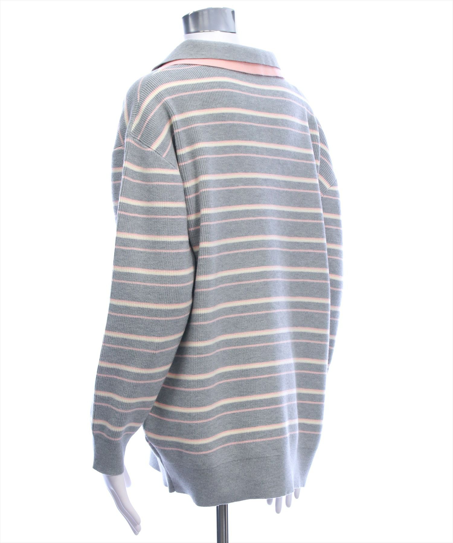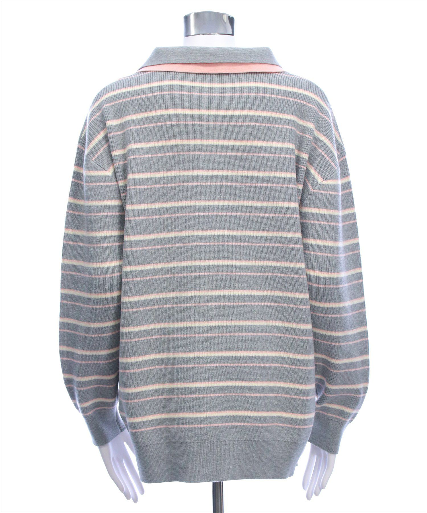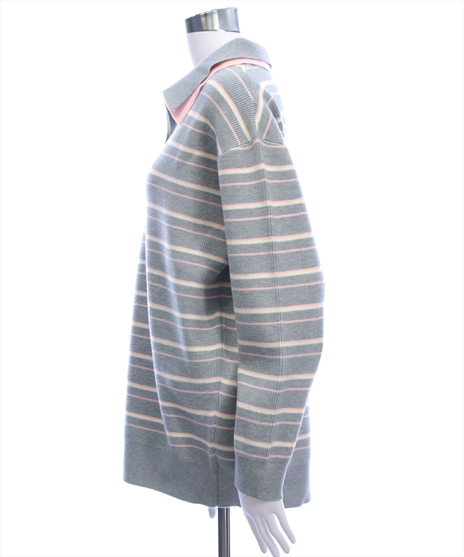 clear≪AW新作≫レイヤード襟付きボーダーニットトップス[CL9474]