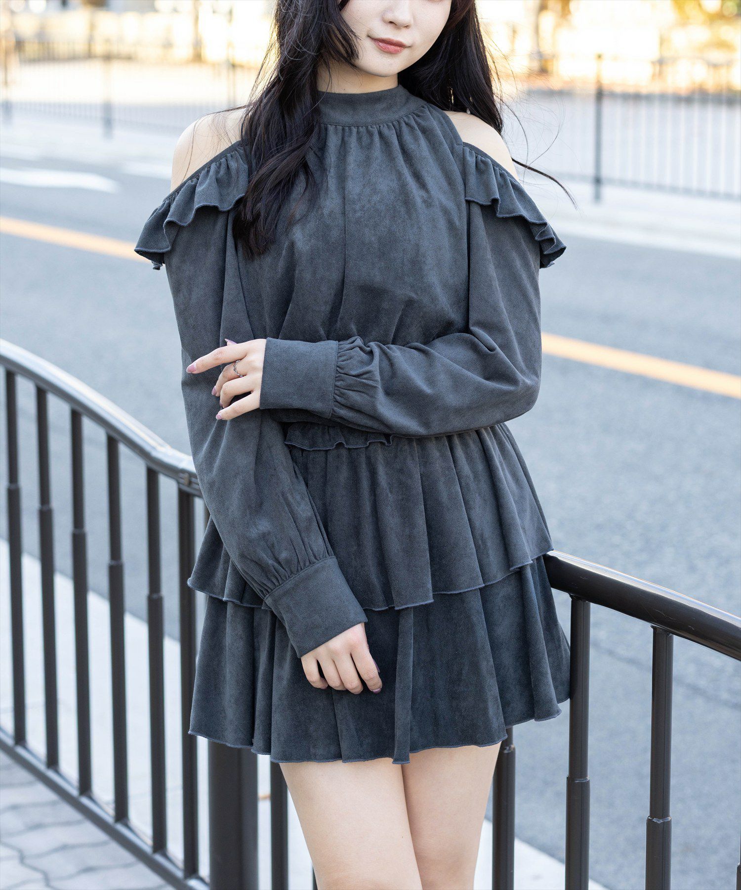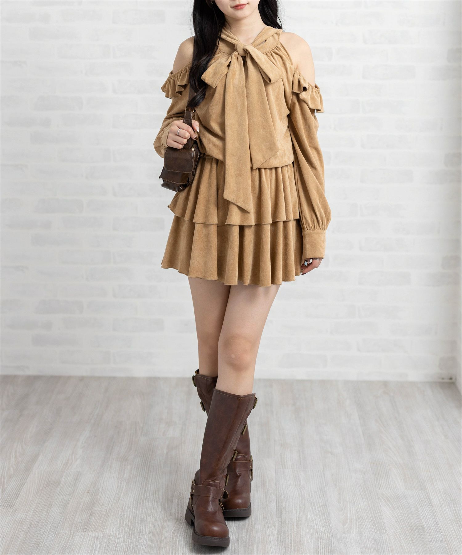 clear≪AW新作≫2wayリボンフェイクスエード長袖ミニワンピース[CL9539]