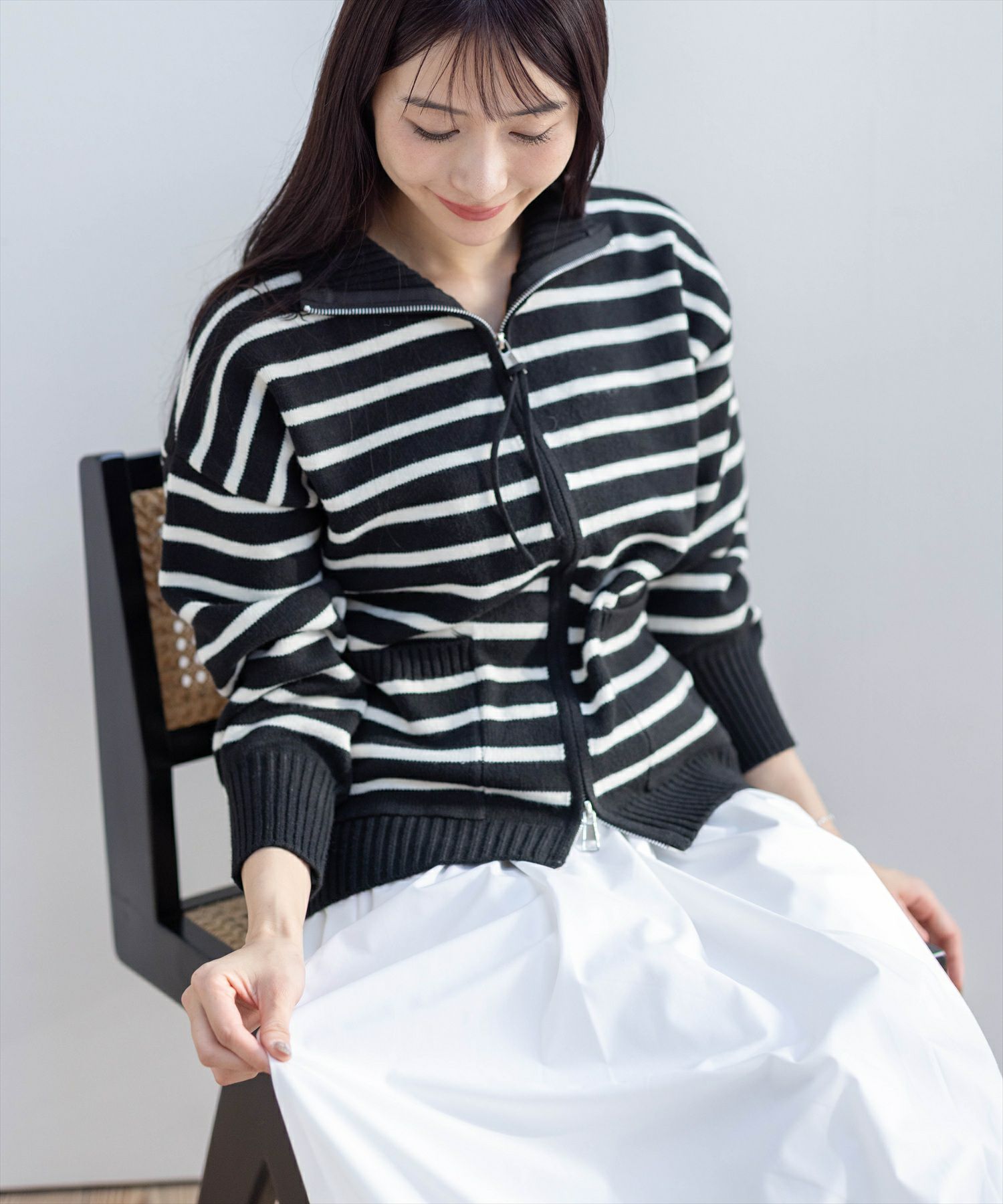 STAY MOTION≪WEB限定/AW新作≫ダブルジップボーダーニットトップス[ST1079]