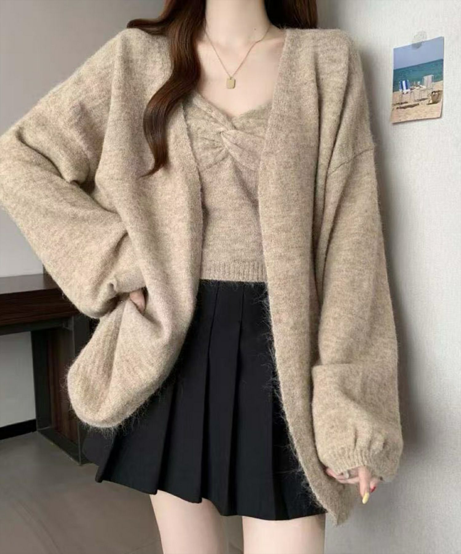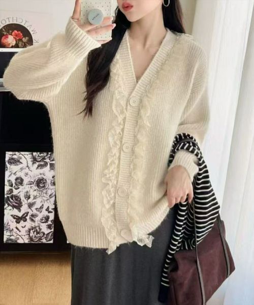 STAY MOTION≪WEB限定/AW新作≫レースオーバーサイズVネックニットカーディガン[ST1086]