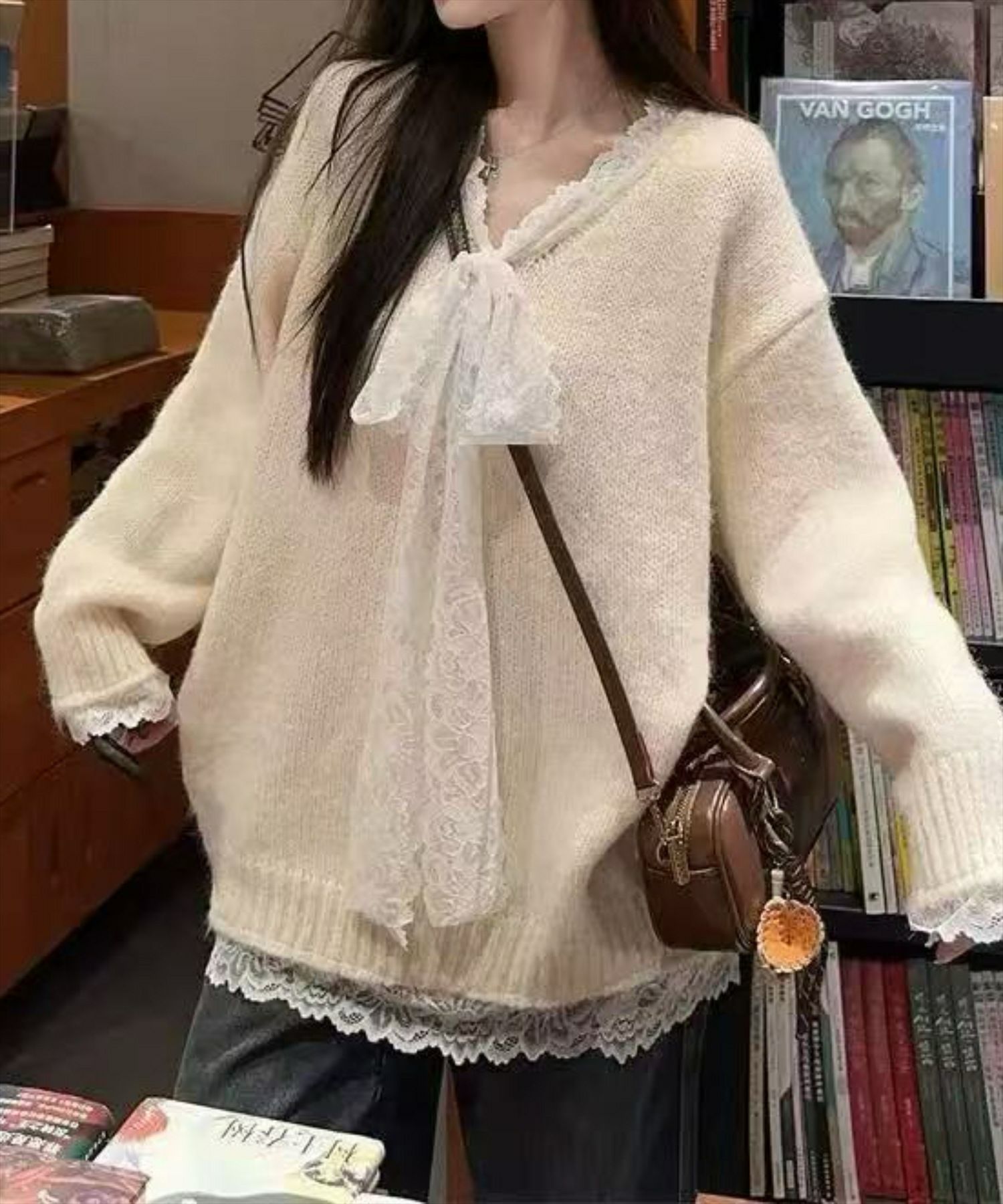STAY MOTION≪WEB限定/AW新作≫レースリボンオーバーサイズニットトップス[ST1085]