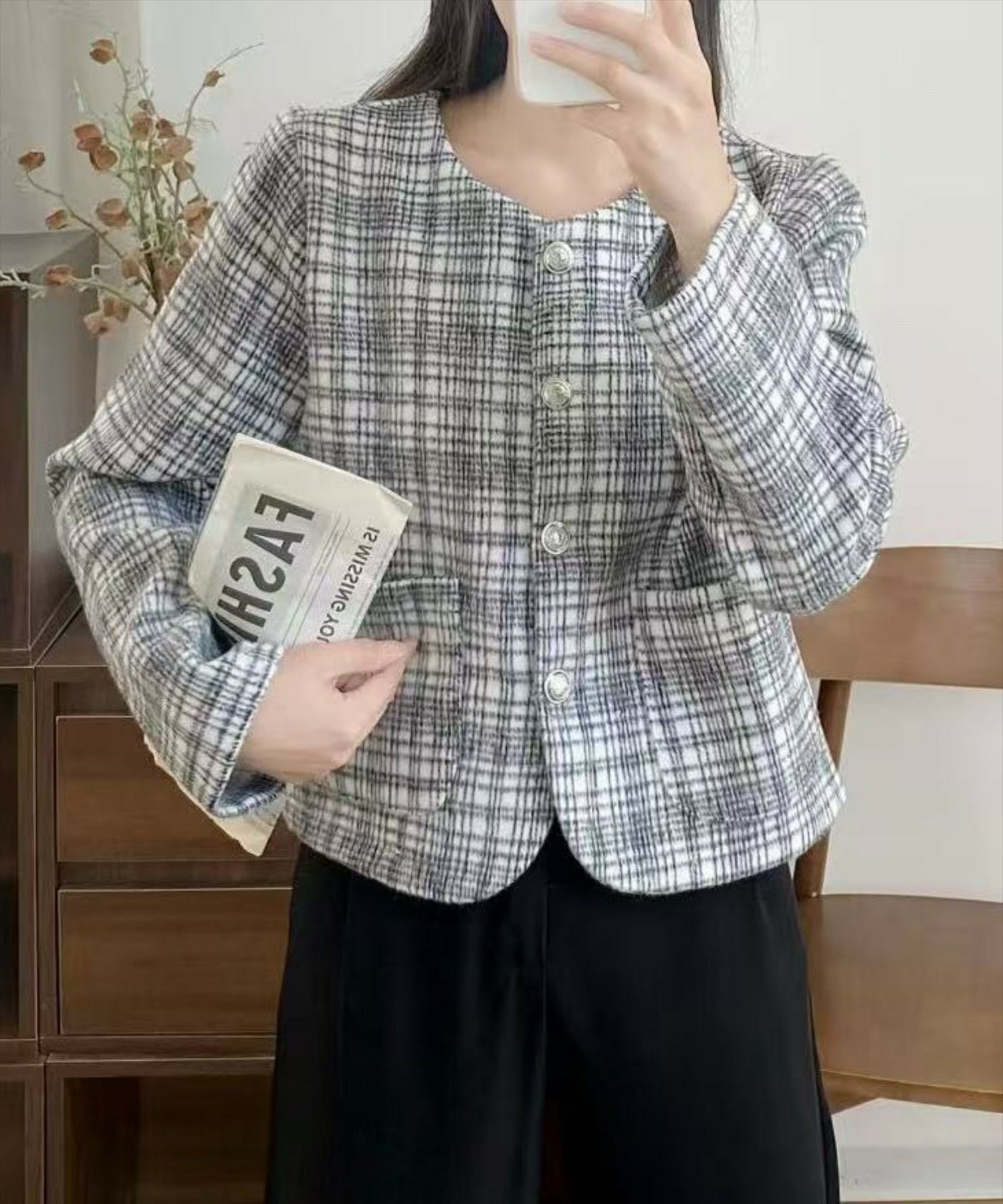 STAY MOTION≪WEB限定/AW新作≫シルバーボタンチェック柄ジャケット[ST1084]